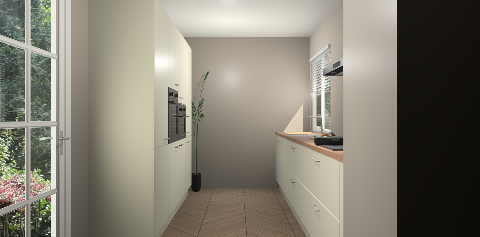 Een stijlvolle en praktische keuken als deze mag gezien worden. Dankzij de prachtige matte afwerking wordt de keuken gemakkelijk het middelpunt van uw huis - hij ziet er geweldig uit onder allerlei lichtomstandigheden, van dag tot nacht!