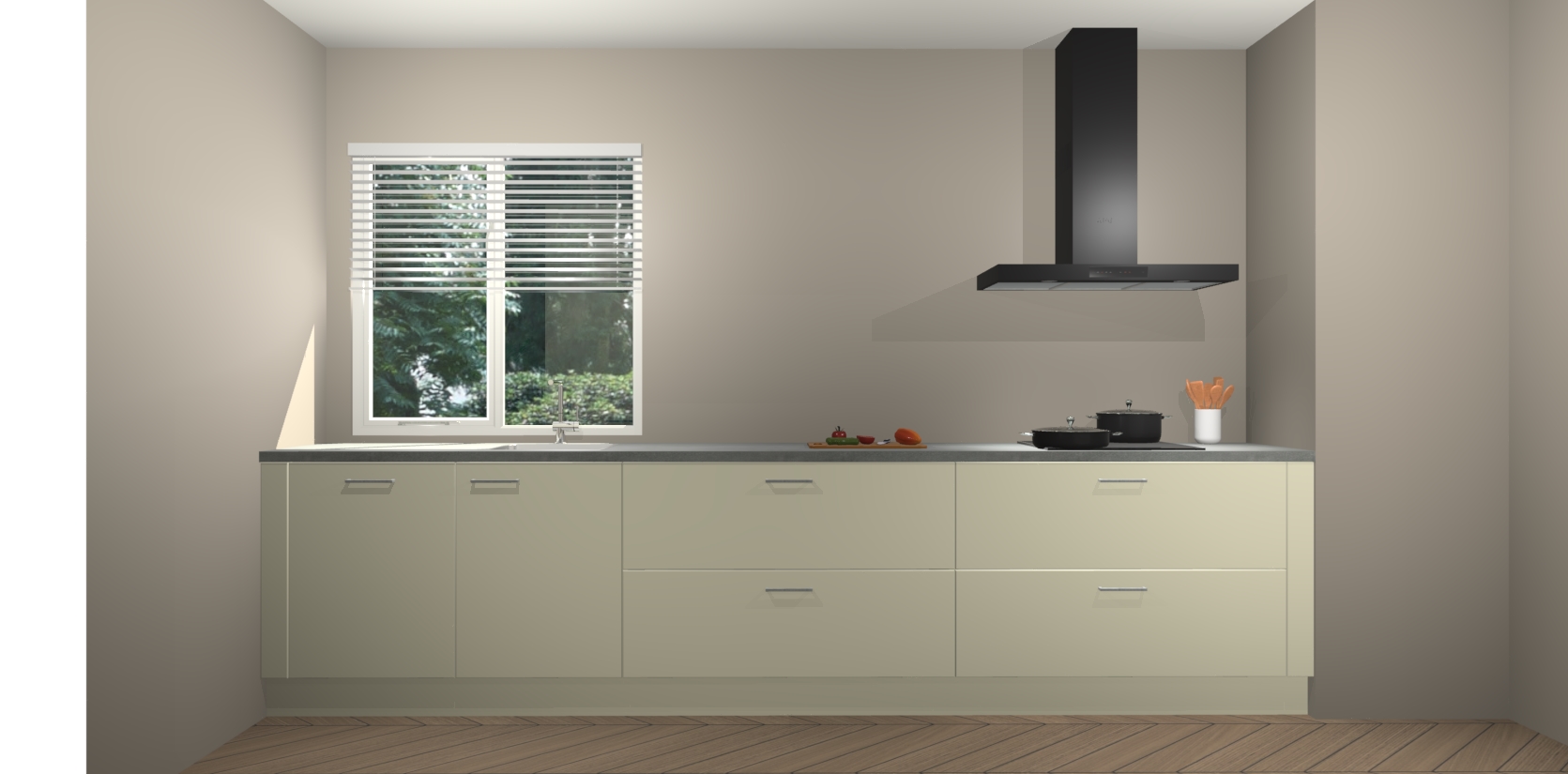 Een stijlvolle en praktische keuken als deze mag gezien worden. Dankzij de prachtige matte afwerking wordt de keuken gemakkelijk het middelpunt van uw huis - hij ziet er geweldig uit onder allerlei lichtomstandigheden, van dag tot nacht!