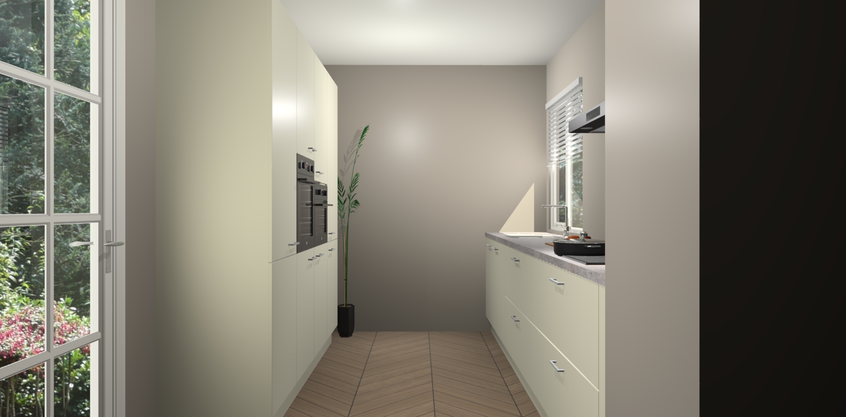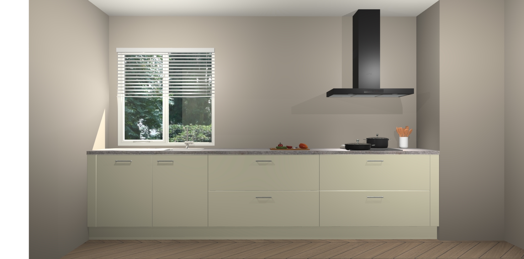 Een stijlvolle en praktische keuken als deze mag gezien worden. Dankzij de prachtige matte afwerking wordt de keuken gemakkelijk het middelpunt van uw huis - hij ziet er geweldig uit onder allerlei lichtomstandigheden, van dag tot nacht!