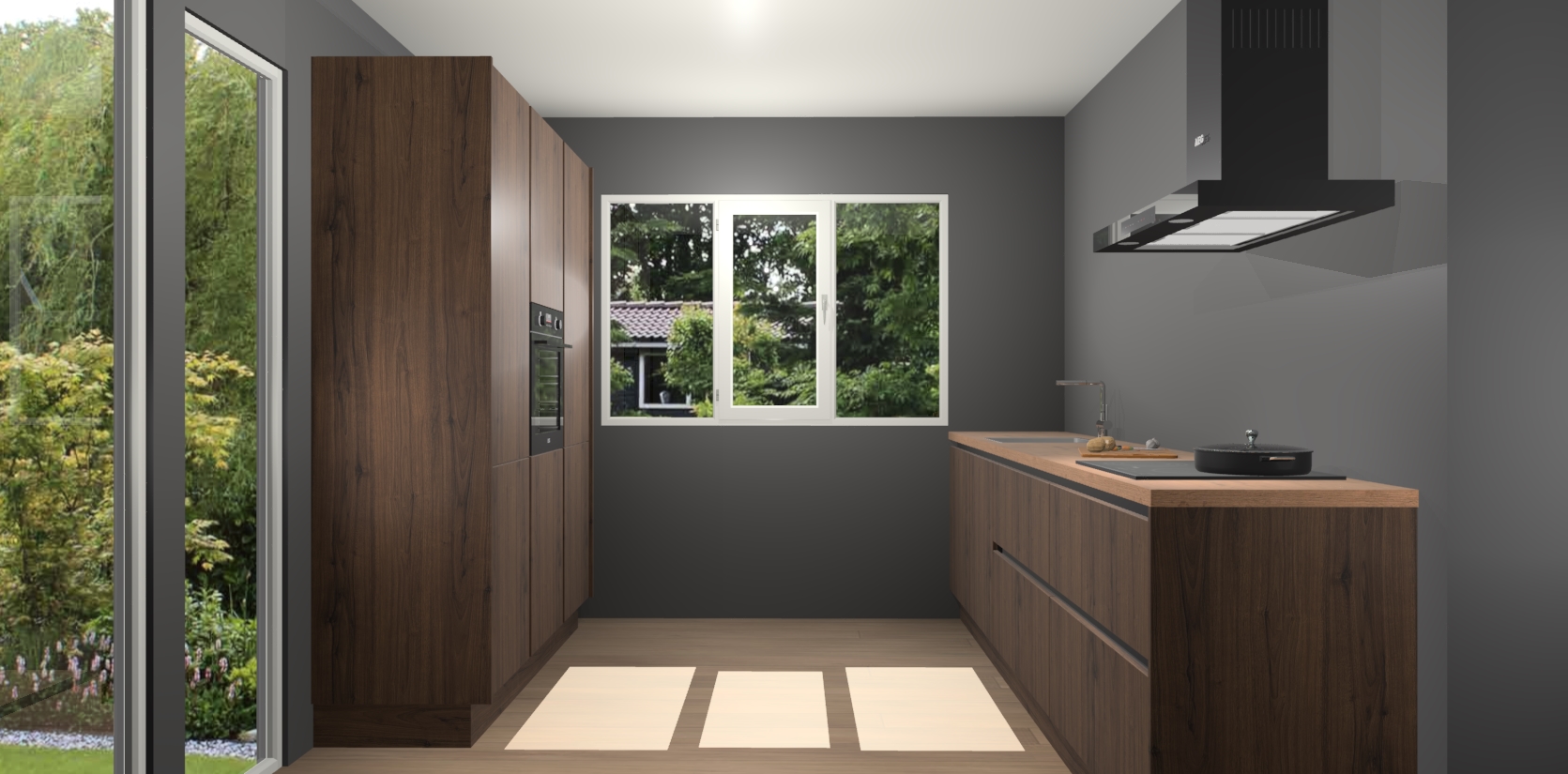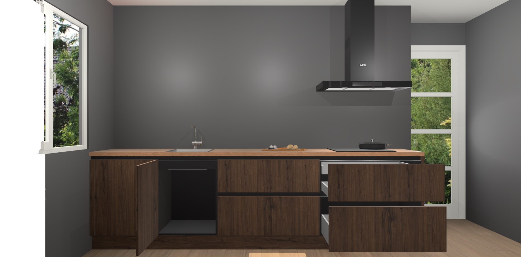 De softclose deuren openen en sluiten is ook heel eenvoudig - geniet van een moeiteloze keukenervaring, zelfs als er kinderen rondlopen. Voor extra gemak bij het plaatsen van uw bestelling bieden we ook een upgrade naar een kookplaat met geïntegreerde afzuiging.