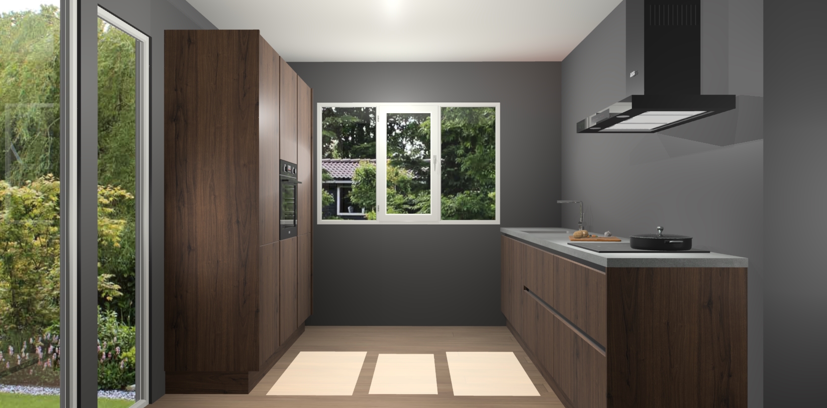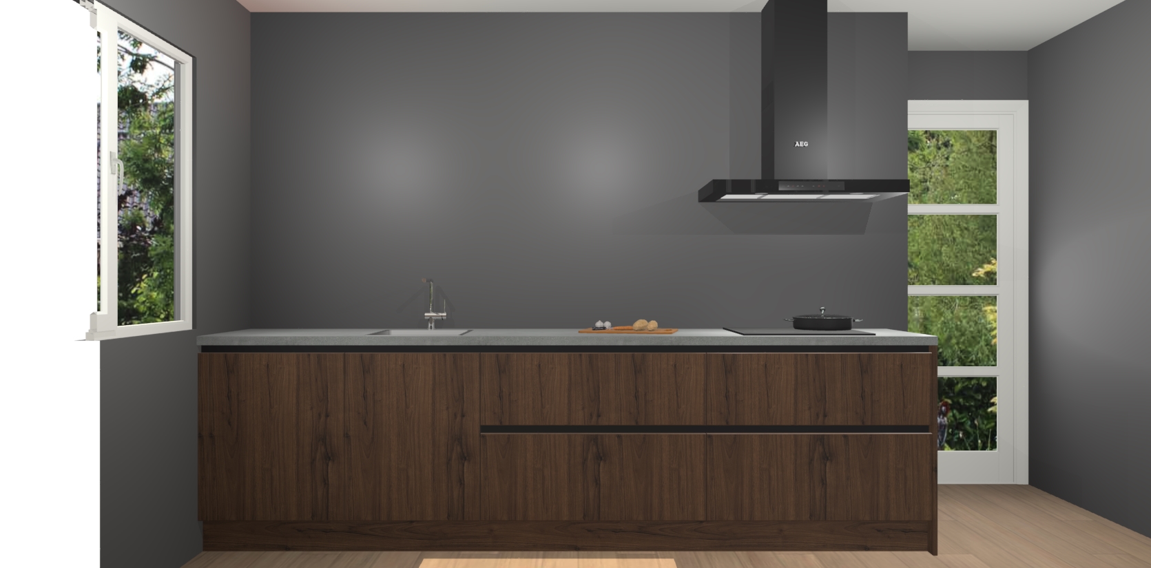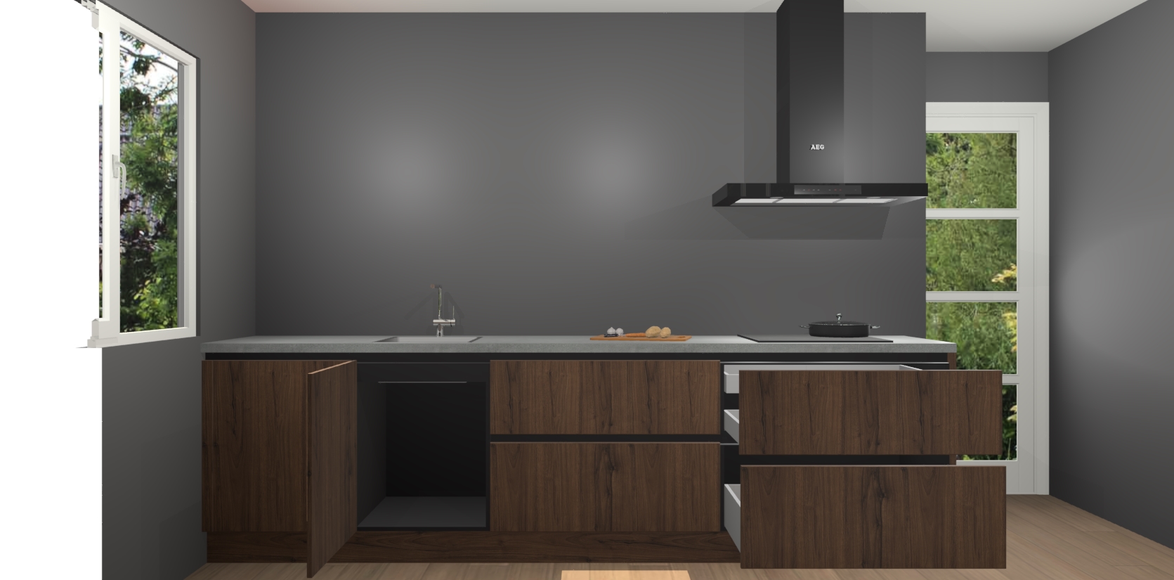De softclose deuren openen en sluiten is ook heel eenvoudig - geniet van een moeiteloze keukenervaring, zelfs als er kinderen rondlopen. Voor extra gemak bij het plaatsen van uw bestelling bieden we ook een upgrade naar een kookplaat met geïntegreerde afzuiging.