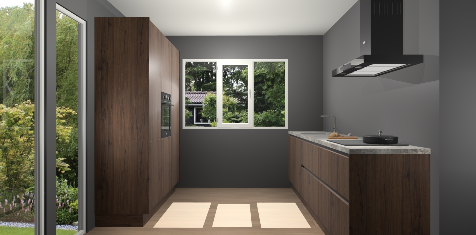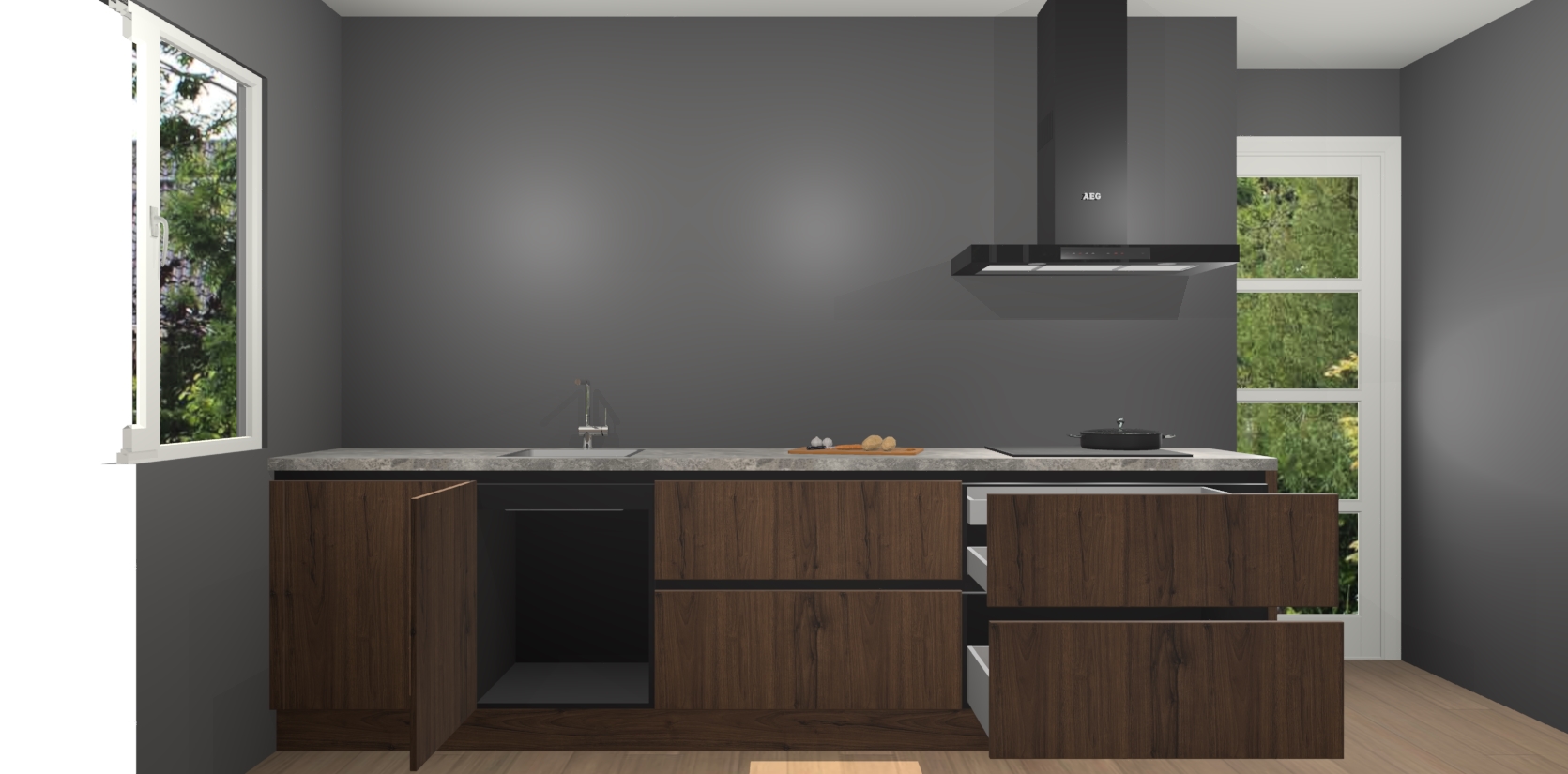 De softclose deuren openen en sluiten is ook heel eenvoudig - geniet van een moeiteloze keukenervaring, zelfs als er kinderen rondlopen. Voor extra gemak bij het plaatsen van uw bestelling bieden we ook een upgrade naar een kookplaat met geïntegreerde afzuiging.