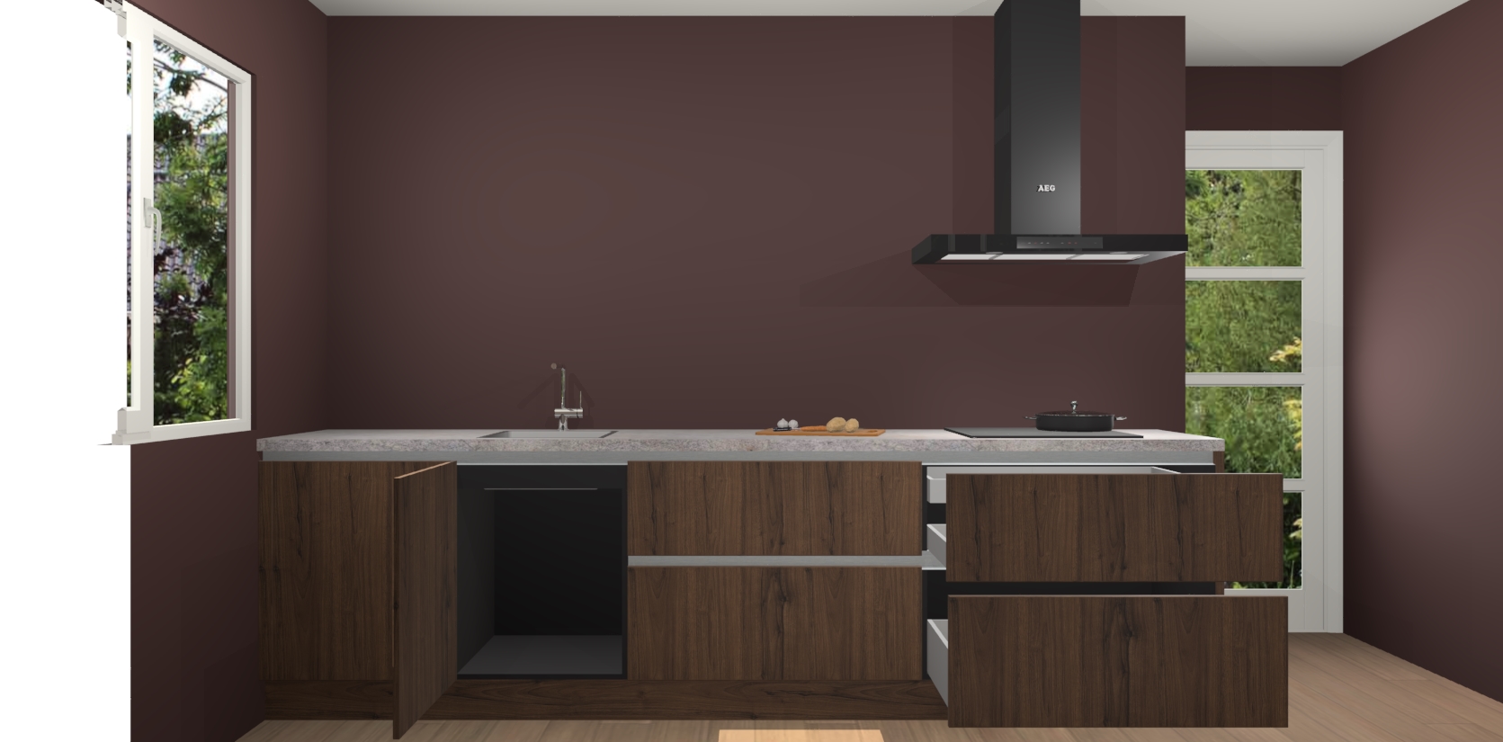 De softclose deuren openen en sluiten is ook heel eenvoudig - geniet van een moeiteloze keukenervaring, zelfs als er kinderen rondlopen. Voor extra gemak bij het plaatsen van uw bestelling bieden we ook een upgrade naar een kookplaat met geïntegreerde afzuiging.