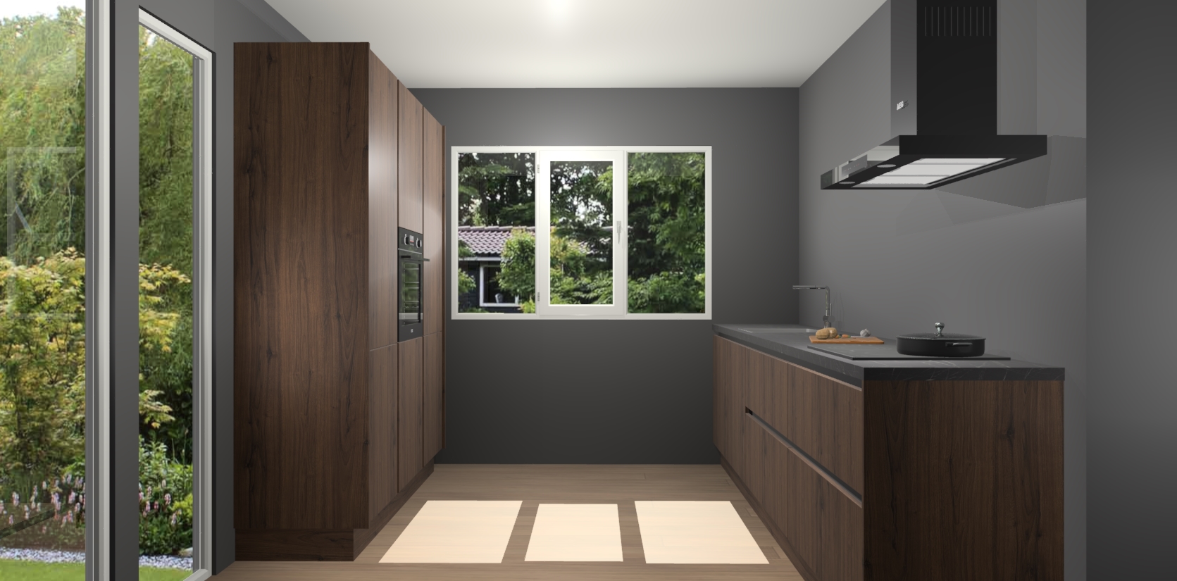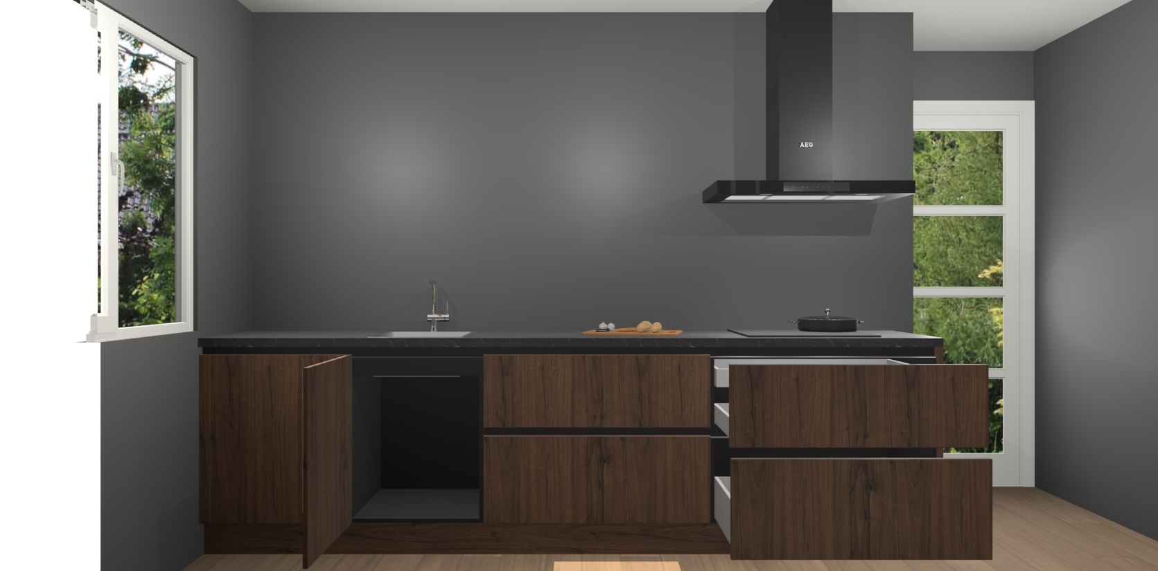 De softclose deuren openen en sluiten is ook heel eenvoudig - geniet van een moeiteloze keukenervaring, zelfs als er kinderen rondlopen. Voor extra gemak bij het plaatsen van uw bestelling bieden we ook een upgrade naar een kookplaat met geïntegreerde afzuiging.