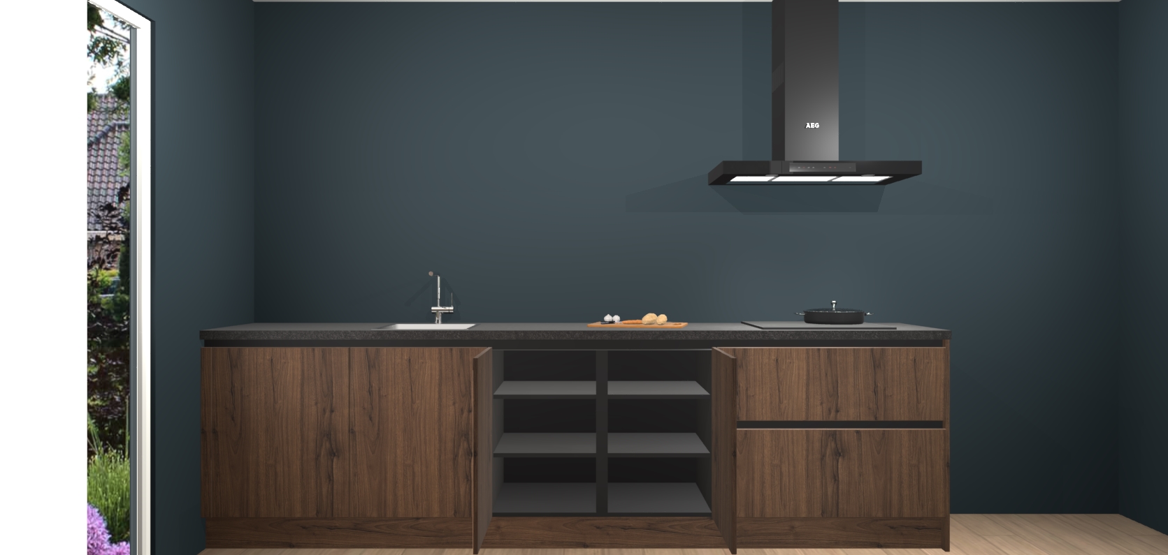 De softclose deuren openen en sluiten is ook heel eenvoudig - geniet van een moeiteloze keukenervaring, zelfs als er kinderen rondlopen. Voor extra gemak bij het plaatsen van uw bestelling bieden we ook een upgrade naar een kookplaat met geïntegreerde afzuiging.