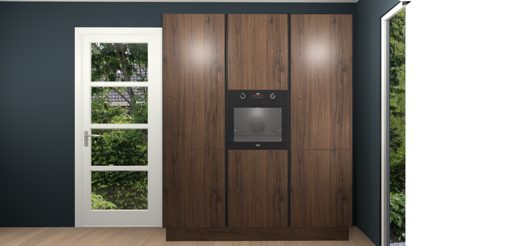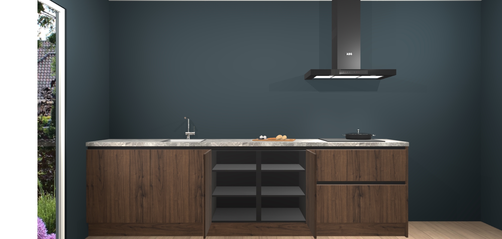 De softclose deuren openen en sluiten is ook heel eenvoudig - geniet van een moeiteloze keukenervaring, zelfs als er kinderen rondlopen. Voor extra gemak bij het plaatsen van uw bestelling bieden we ook een upgrade naar een kookplaat met geïntegreerde afzuiging.