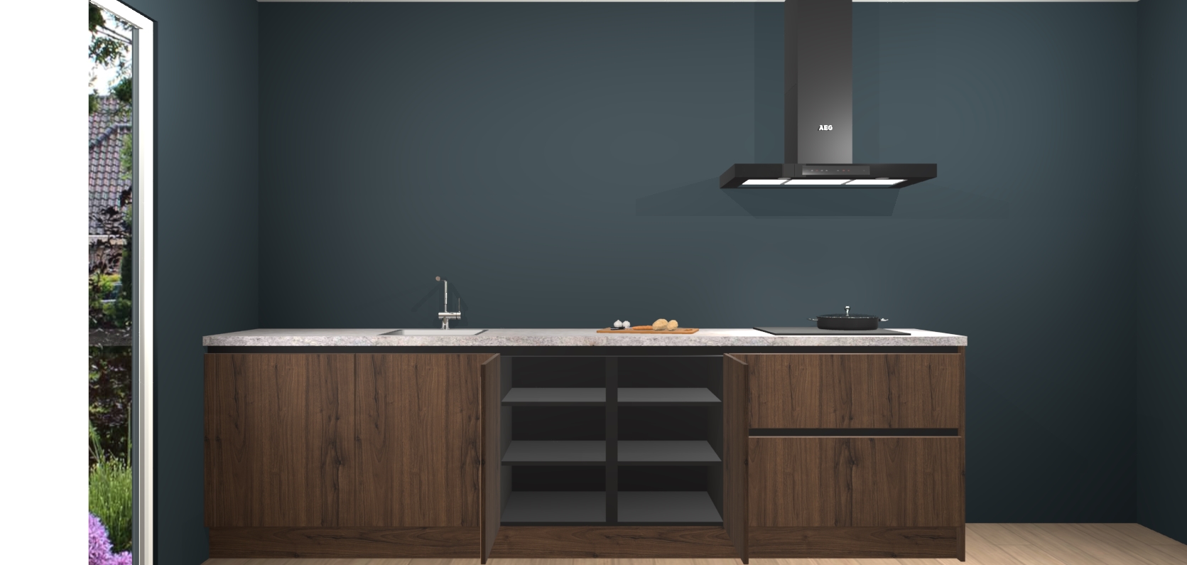 De softclose deuren openen en sluiten is ook heel eenvoudig - geniet van een moeiteloze keukenervaring, zelfs als er kinderen rondlopen. Voor extra gemak bij het plaatsen van uw bestelling bieden we ook een upgrade naar een kookplaat met geïntegreerde afzuiging.