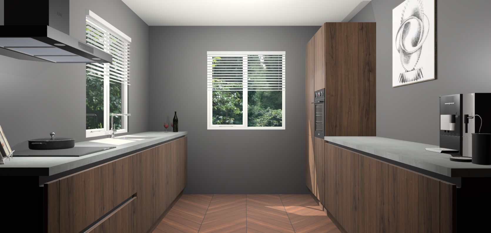 Welkom bij de Noten greeploze keuken Lusaka. Deze prachtige keuken zal de komende jaren het middelpunt van de belangstelling in uw huis zijn. Uitgerust met vijf inbouwapparaten komt u nooit kookgereedschap tekort. Bovendien geeft de warme houtlook elke ruimte een uitnodigende en tijdloze uitstraling.