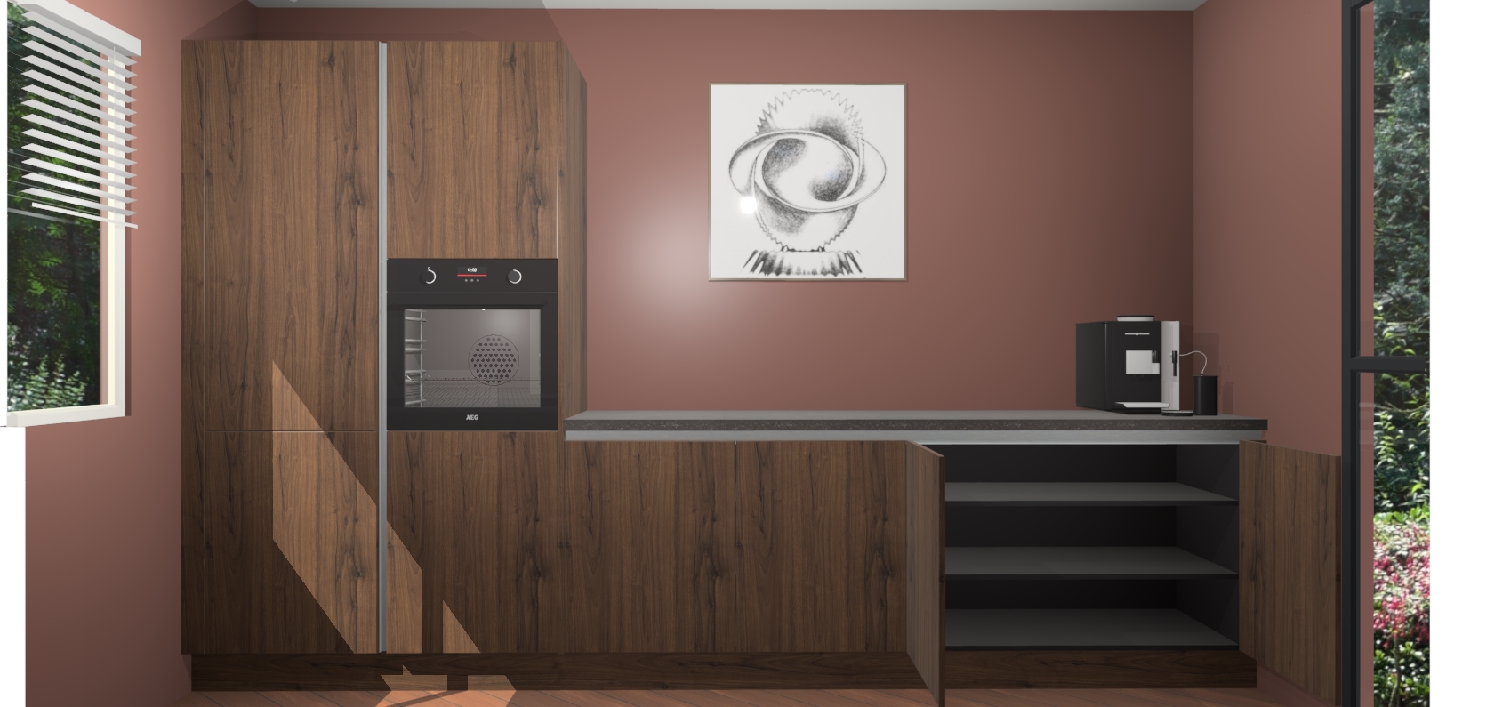 Welkom bij de Noten greeploze keuken Lusaka. Deze prachtige keuken zal de komende jaren het middelpunt van de belangstelling in uw huis zijn. Uitgerust met vijf inbouwapparaten komt u nooit kookgereedschap tekort. Bovendien geeft de warme houtlook elke ruimte een uitnodigende en tijdloze uitstraling.