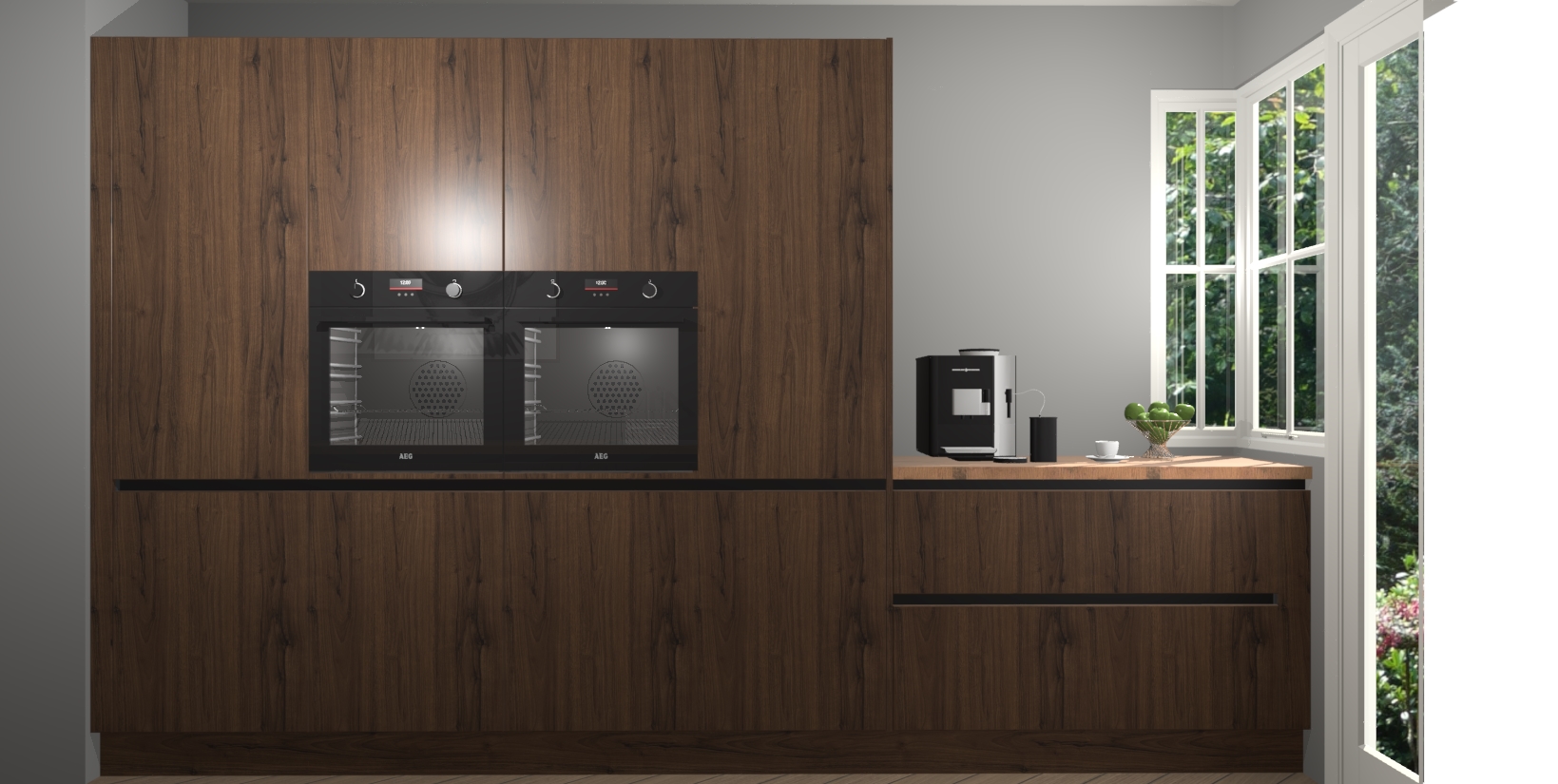 Een stijlvolle en praktische keuken als deze mag gezien worden. Dankzij de prachtige noten matte afwerking wordt de keuken gemakkelijk het middelpunt van uw huis - hij ziet er geweldig uit onder allerlei lichtomstandigheden, van dag tot nacht!