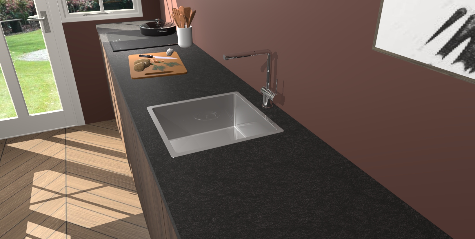 - Uitsparing van kookplaat, spoelbak en kraan dient u zelf te verzorgen.