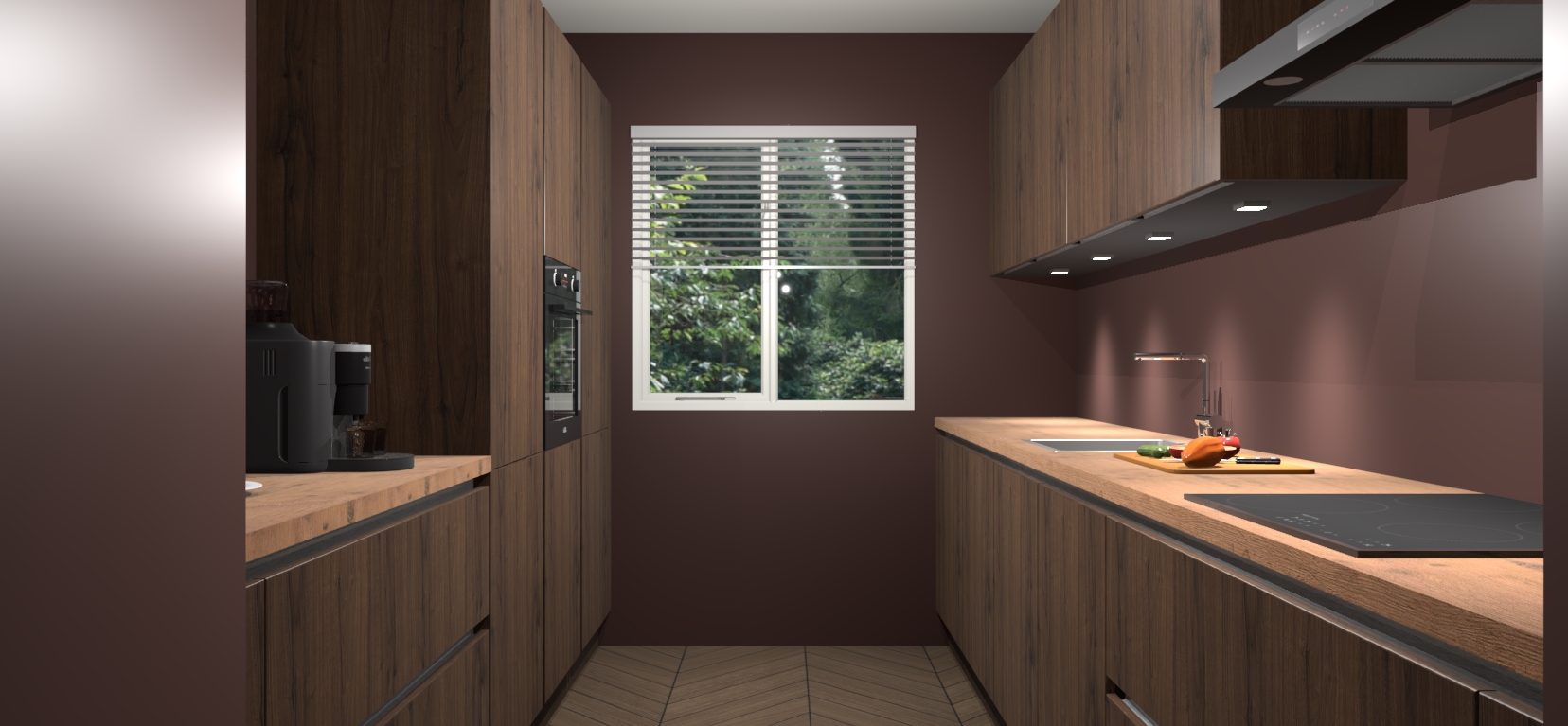 Een stijlvolle en praktische keuken als deze mag gezien worden. Dankzij de prachtige Noten matte afwerking wordt de keuken gemakkelijk het middelpunt van uw huis - hij ziet er geweldig uit onder allerlei lichtomstandigheden, van dag tot nacht!