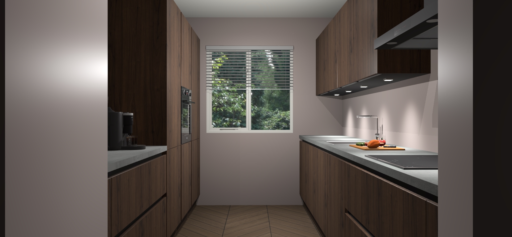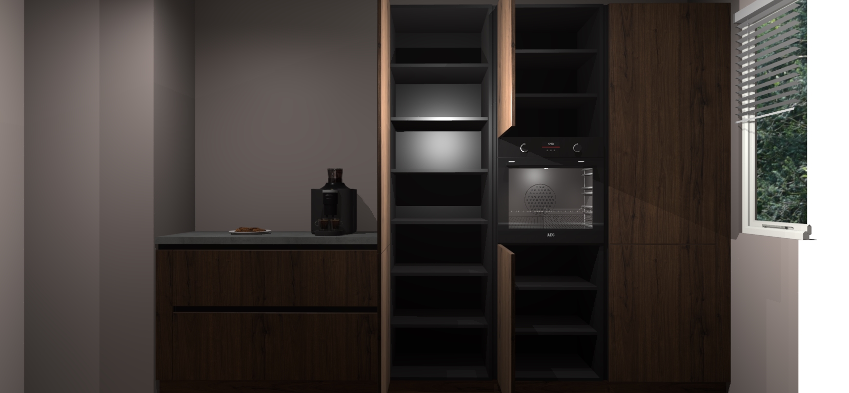Een stijlvolle en praktische keuken als deze mag gezien worden. Dankzij de prachtige Noten matte afwerking wordt de keuken gemakkelijk het middelpunt van uw huis - hij ziet er geweldig uit onder allerlei lichtomstandigheden, van dag tot nacht!