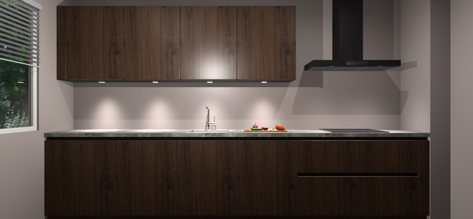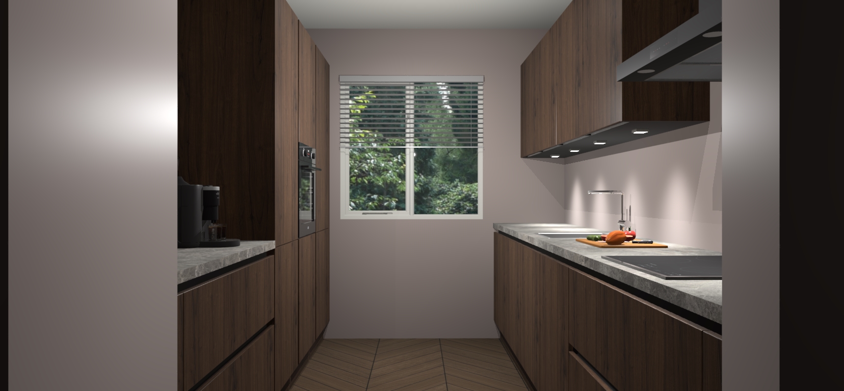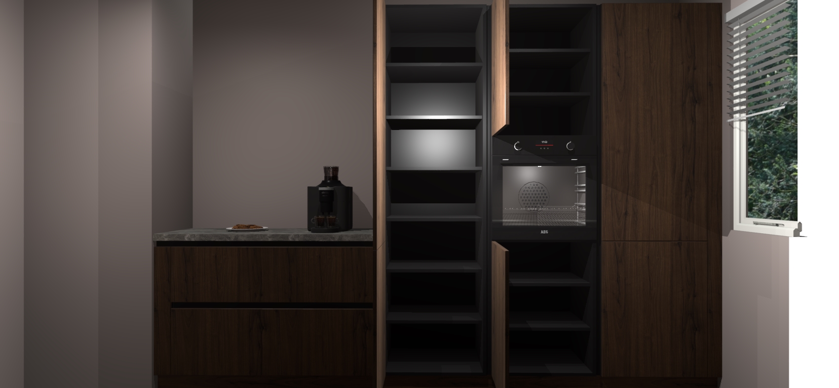 Een stijlvolle en praktische keuken als deze mag gezien worden. Dankzij de prachtige Noten matte afwerking wordt de keuken gemakkelijk het middelpunt van uw huis - hij ziet er geweldig uit onder allerlei lichtomstandigheden, van dag tot nacht!