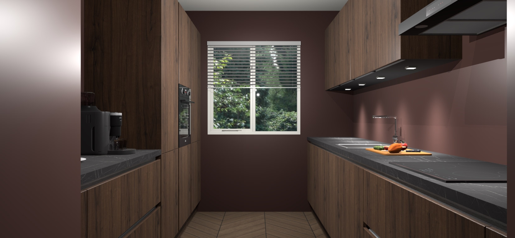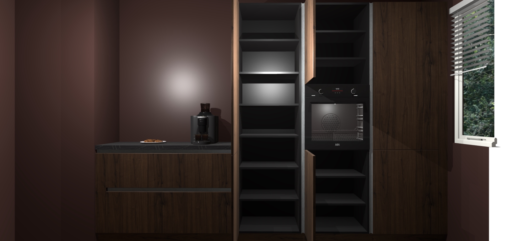 Een stijlvolle en praktische keuken als deze mag gezien worden. Dankzij de prachtige Noten matte afwerking wordt de keuken gemakkelijk het middelpunt van uw huis - hij ziet er geweldig uit onder allerlei lichtomstandigheden, van dag tot nacht!