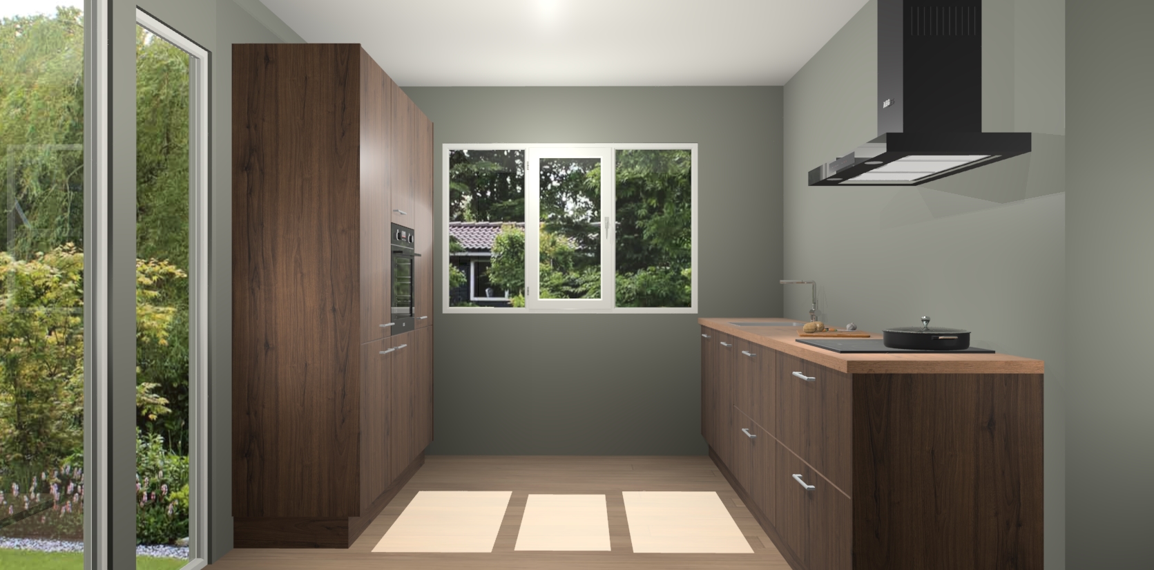 De softclose deuren openen en sluiten is ook heel eenvoudig - geniet van een moeiteloze keukenervaring, zelfs als er kinderen rondlopen. Voor extra gemak bij het plaatsen van uw bestelling bieden we ook een upgrade naar een kookplaat met geïntegreerde afzuiging.