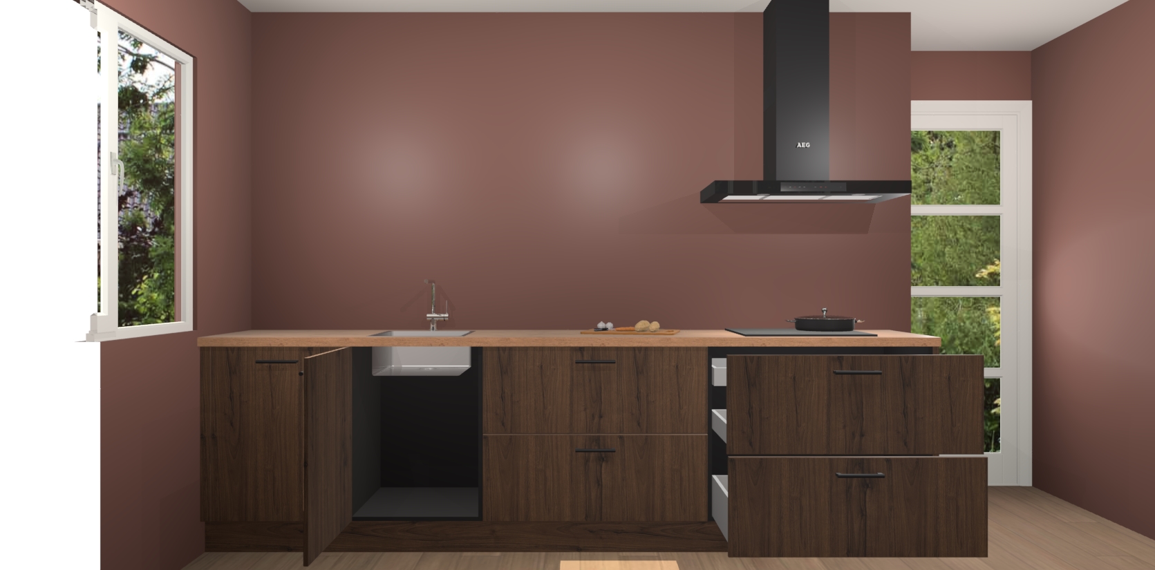 De softclose deuren openen en sluiten is ook heel eenvoudig - geniet van een moeiteloze keukenervaring, zelfs als er kinderen rondlopen. Voor extra gemak bij het plaatsen van uw bestelling bieden we ook een upgrade naar een kookplaat met geïntegreerde afzuiging.