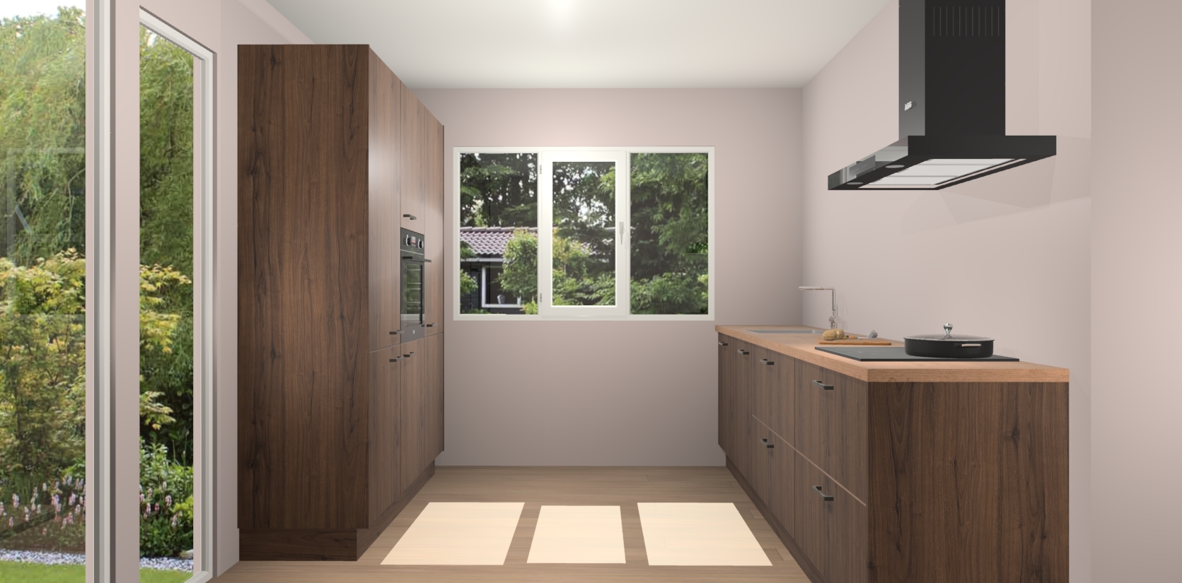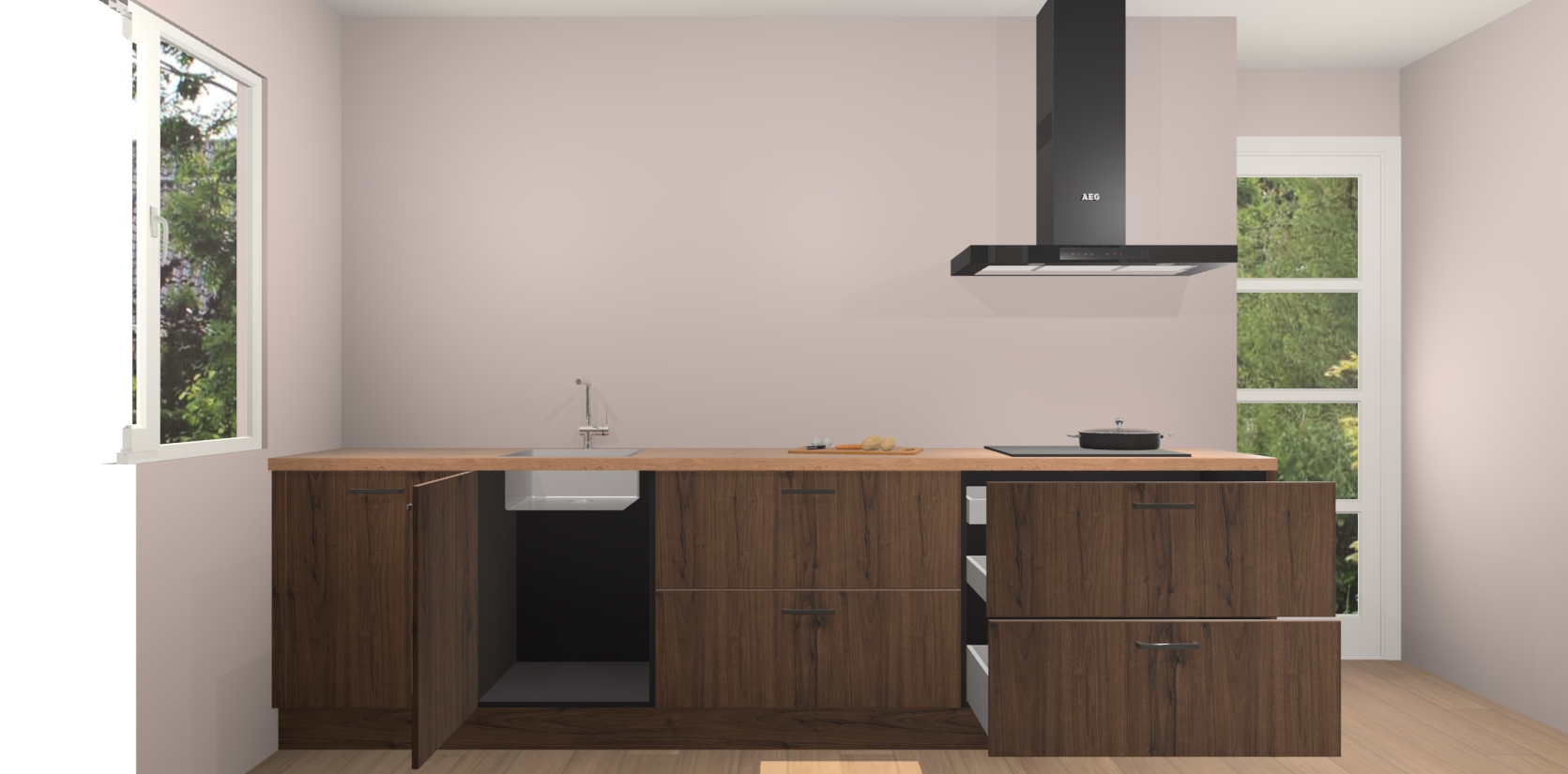 De softclose deuren openen en sluiten is ook heel eenvoudig - geniet van een moeiteloze keukenervaring, zelfs als er kinderen rondlopen. Voor extra gemak bij het plaatsen van uw bestelling bieden we ook een upgrade naar een kookplaat met geïntegreerde afzuiging.