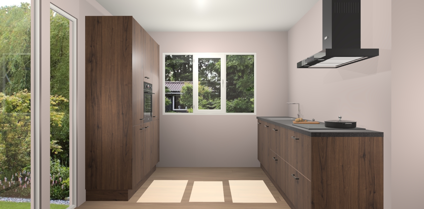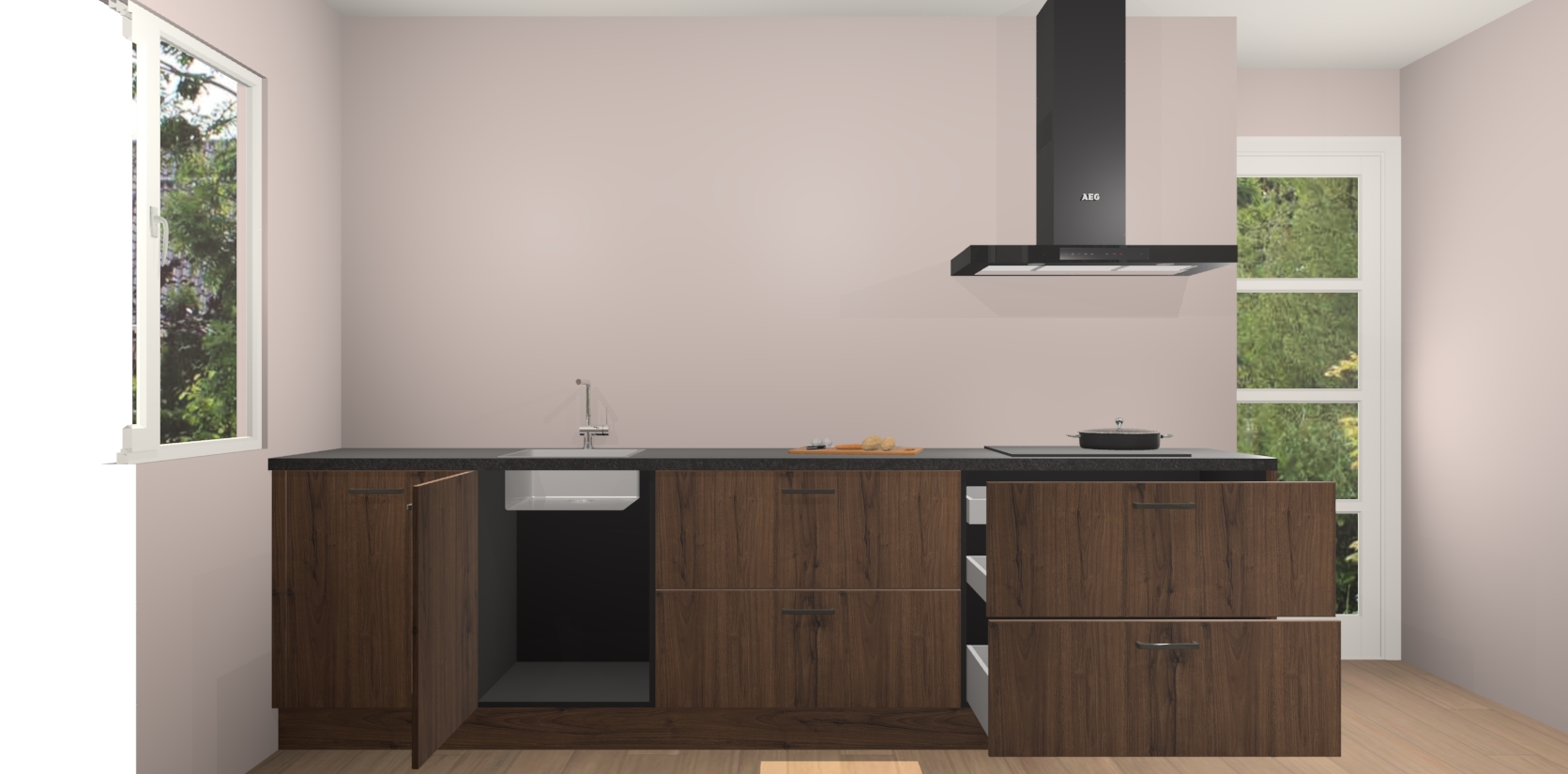 De softclose deuren openen en sluiten is ook heel eenvoudig - geniet van een moeiteloze keukenervaring, zelfs als er kinderen rondlopen. Voor extra gemak bij het plaatsen van uw bestelling bieden we ook een upgrade naar een kookplaat met geïntegreerde afzuiging.