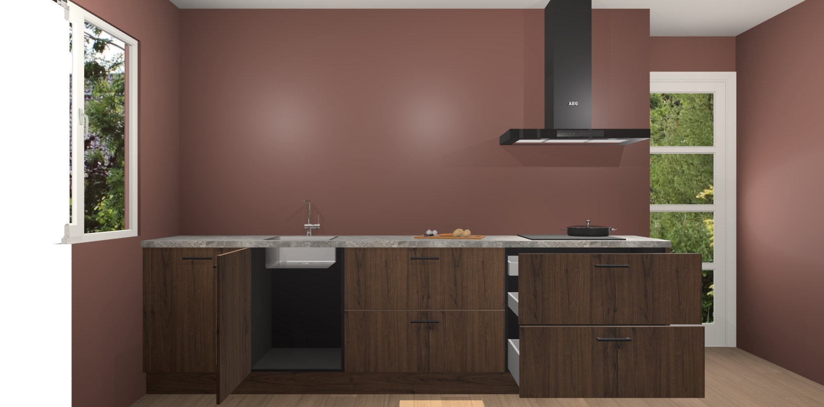 De softclose deuren openen en sluiten is ook heel eenvoudig - geniet van een moeiteloze keukenervaring, zelfs als er kinderen rondlopen. Voor extra gemak bij het plaatsen van uw bestelling bieden we ook een upgrade naar een kookplaat met geïntegreerde afzuiging.