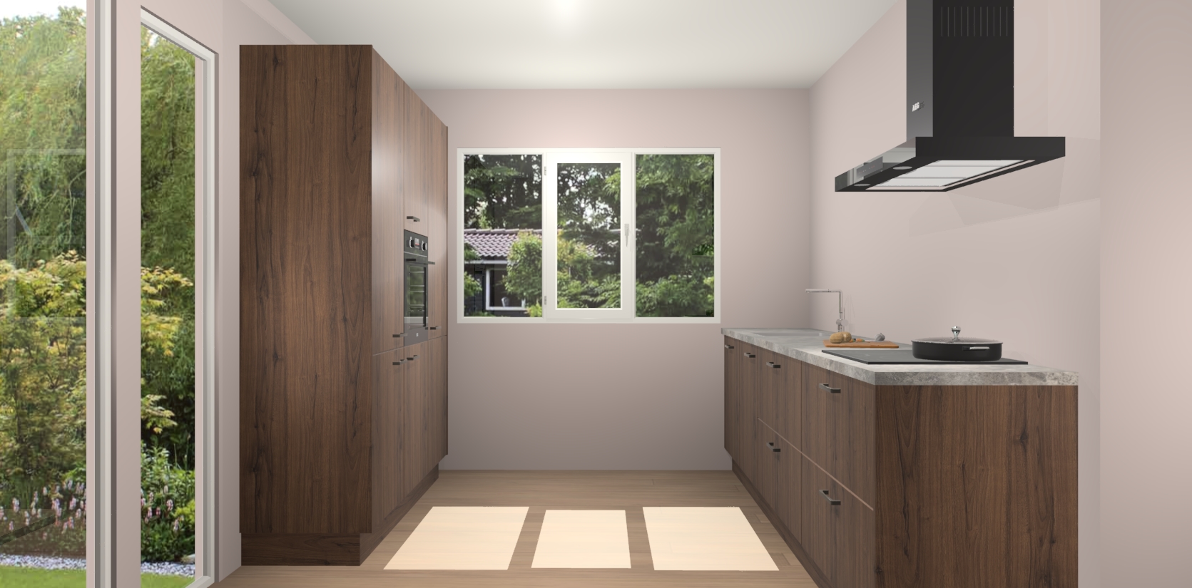 De softclose deuren openen en sluiten is ook heel eenvoudig - geniet van een moeiteloze keukenervaring, zelfs als er kinderen rondlopen. Voor extra gemak bij het plaatsen van uw bestelling bieden we ook een upgrade naar een kookplaat met geïntegreerde afzuiging.