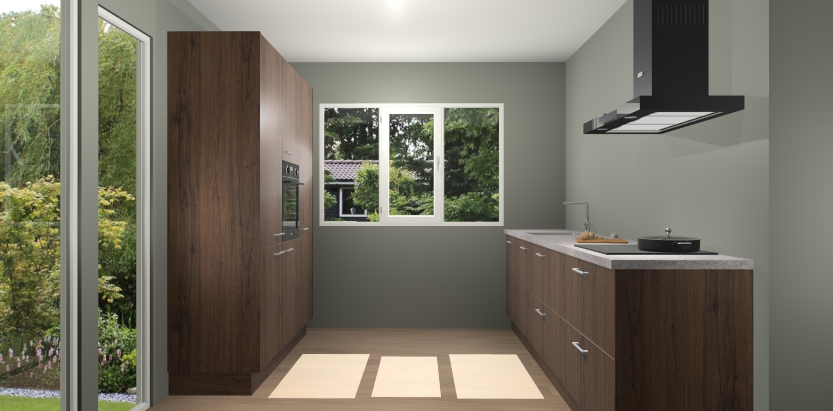 De softclose deuren openen en sluiten is ook heel eenvoudig - geniet van een moeiteloze keukenervaring, zelfs als er kinderen rondlopen. Voor extra gemak bij het plaatsen van uw bestelling bieden we ook een upgrade naar een kookplaat met geïntegreerde afzuiging.