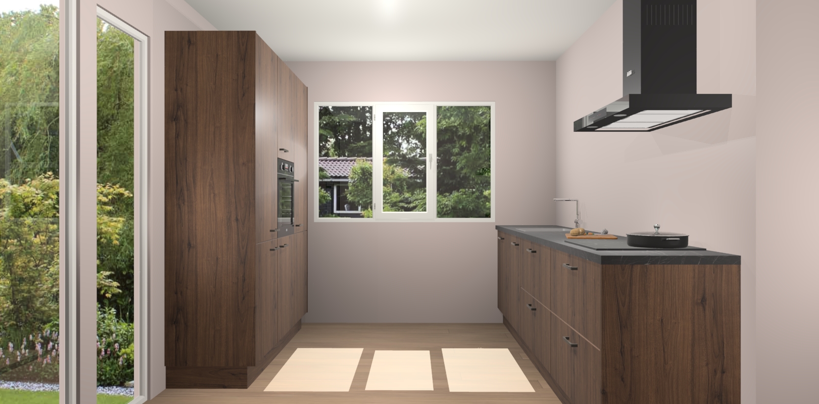 De softclose deuren openen en sluiten is ook heel eenvoudig - geniet van een moeiteloze keukenervaring, zelfs als er kinderen rondlopen. Voor extra gemak bij het plaatsen van uw bestelling bieden we ook een upgrade naar een kookplaat met geïntegreerde afzuiging.