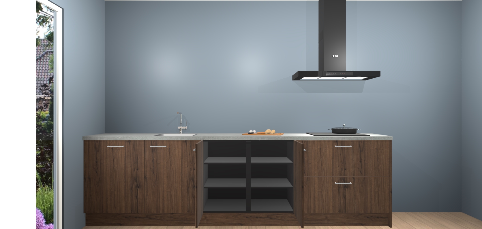 De softclose deuren openen en sluiten is ook heel eenvoudig - geniet van een moeiteloze keukenervaring, zelfs als er kinderen rondlopen. Voor extra gemak bij het plaatsen van uw bestelling bieden we ook een upgrade naar een kookplaat met geïntegreerde afzuiging.
