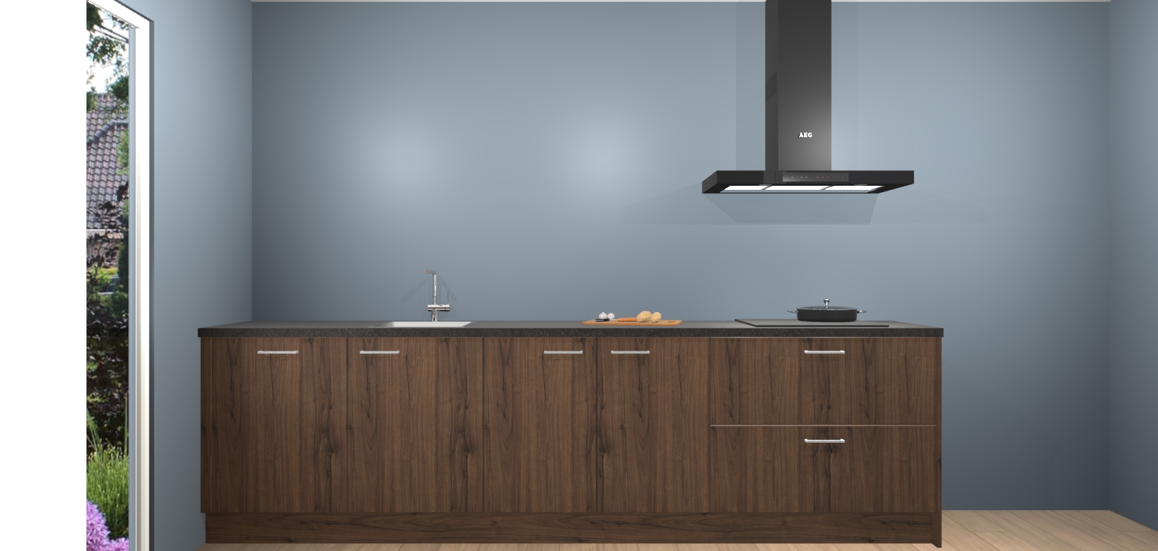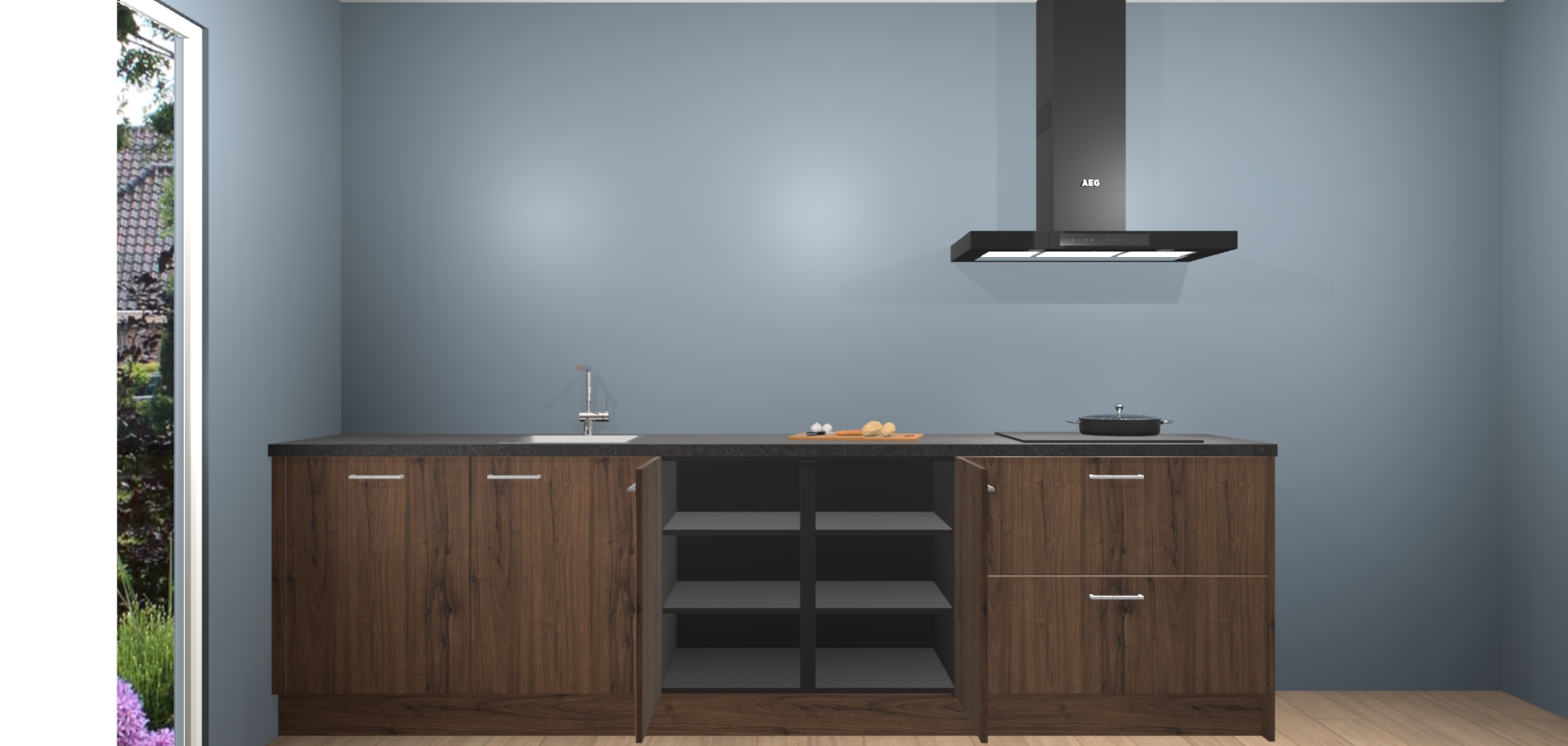 De softclose deuren openen en sluiten is ook heel eenvoudig - geniet van een moeiteloze keukenervaring, zelfs als er kinderen rondlopen. Voor extra gemak bij het plaatsen van uw bestelling bieden we ook een upgrade naar een kookplaat met geïntegreerde afzuiging.
