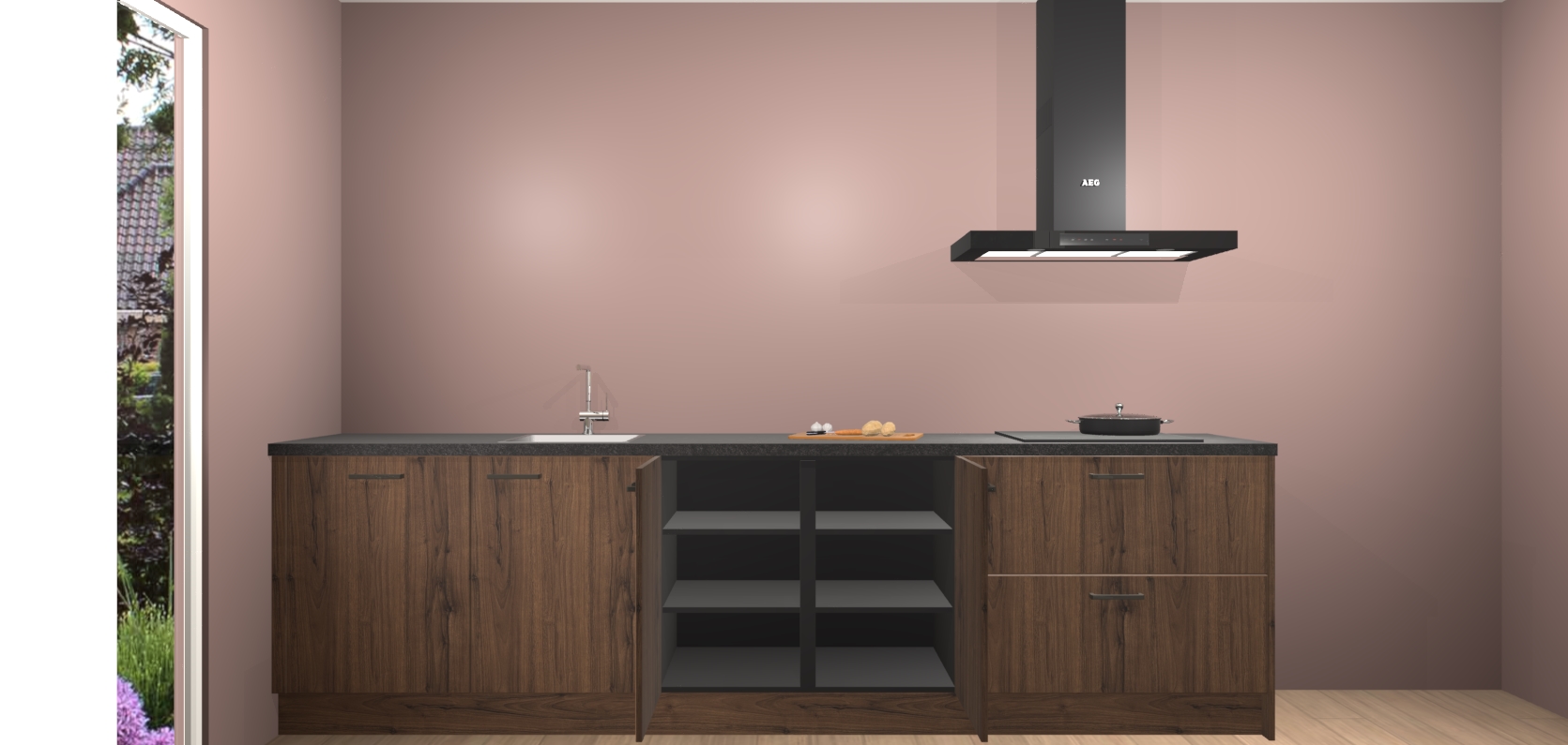 De softclose deuren openen en sluiten is ook heel eenvoudig - geniet van een moeiteloze keukenervaring, zelfs als er kinderen rondlopen. Voor extra gemak bij het plaatsen van uw bestelling bieden we ook een upgrade naar een kookplaat met geïntegreerde afzuiging.