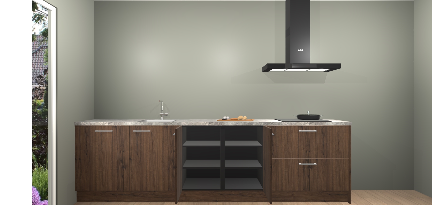 De softclose deuren openen en sluiten is ook heel eenvoudig - geniet van een moeiteloze keukenervaring, zelfs als er kinderen rondlopen. Voor extra gemak bij het plaatsen van uw bestelling bieden we ook een upgrade naar een kookplaat met geïntegreerde afzuiging.