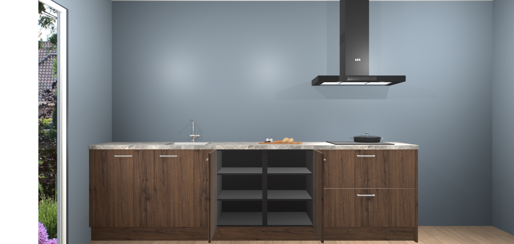 De softclose deuren openen en sluiten is ook heel eenvoudig - geniet van een moeiteloze keukenervaring, zelfs als er kinderen rondlopen. Voor extra gemak bij het plaatsen van uw bestelling bieden we ook een upgrade naar een kookplaat met geïntegreerde afzuiging.