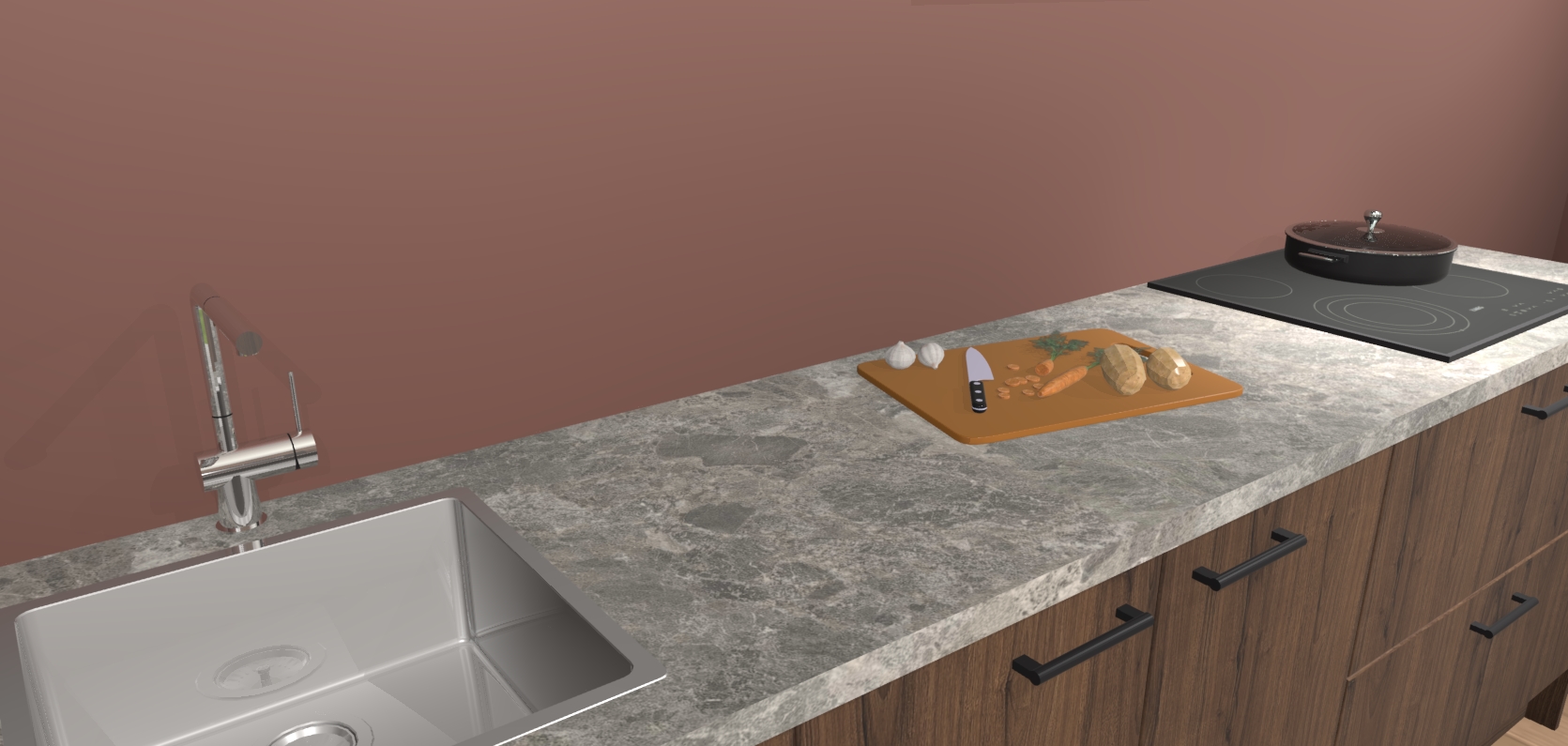 - Uitsparing van kookplaat, spoelbak en kraan dient u zelf te verzorgen.