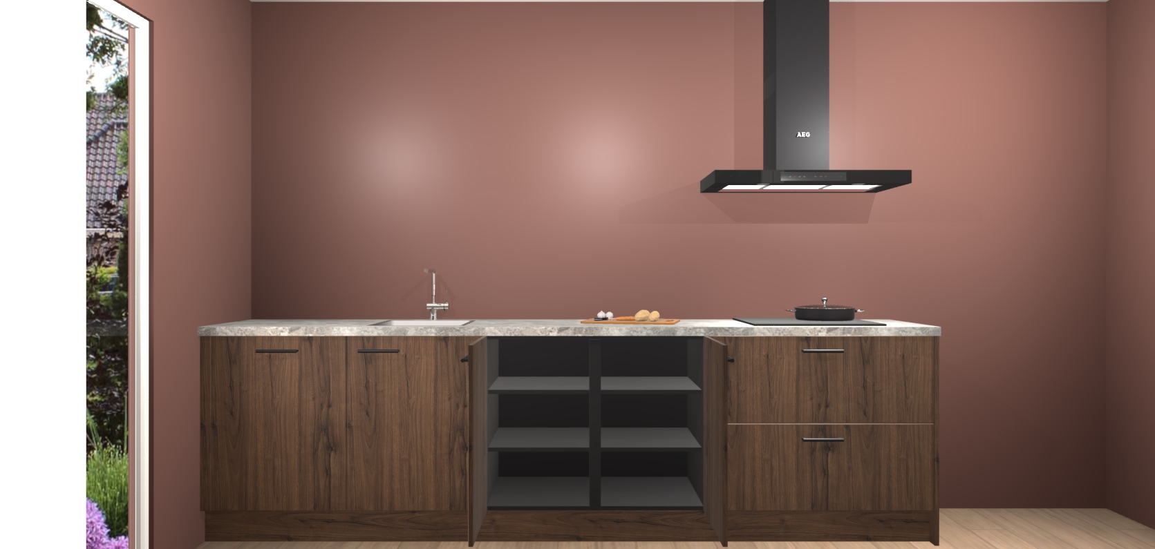 De softclose deuren openen en sluiten is ook heel eenvoudig - geniet van een moeiteloze keukenervaring, zelfs als er kinderen rondlopen. Voor extra gemak bij het plaatsen van uw bestelling bieden we ook een upgrade naar een kookplaat met geïntegreerde afzuiging.