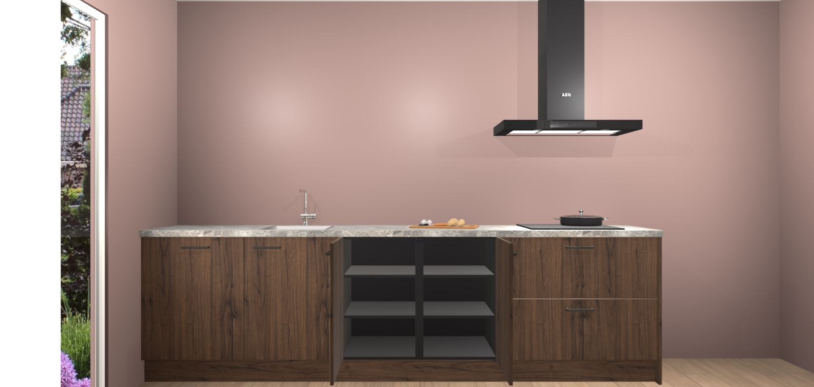 De softclose deuren openen en sluiten is ook heel eenvoudig - geniet van een moeiteloze keukenervaring, zelfs als er kinderen rondlopen. Voor extra gemak bij het plaatsen van uw bestelling bieden we ook een upgrade naar een kookplaat met geïntegreerde afzuiging.