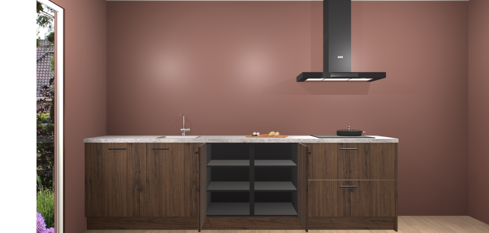 De softclose deuren openen en sluiten is ook heel eenvoudig - geniet van een moeiteloze keukenervaring, zelfs als er kinderen rondlopen. Voor extra gemak bij het plaatsen van uw bestelling bieden we ook een upgrade naar een kookplaat met geïntegreerde afzuiging.