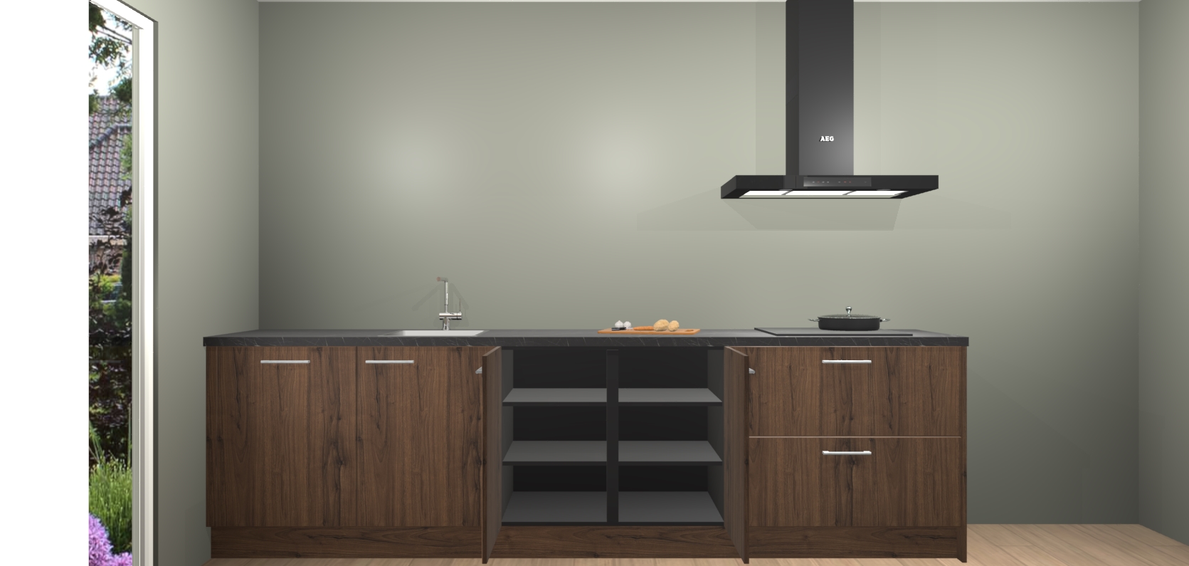 De softclose deuren openen en sluiten is ook heel eenvoudig - geniet van een moeiteloze keukenervaring, zelfs als er kinderen rondlopen. Voor extra gemak bij het plaatsen van uw bestelling bieden we ook een upgrade naar een kookplaat met geïntegreerde afzuiging.