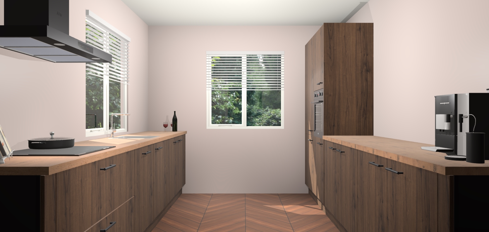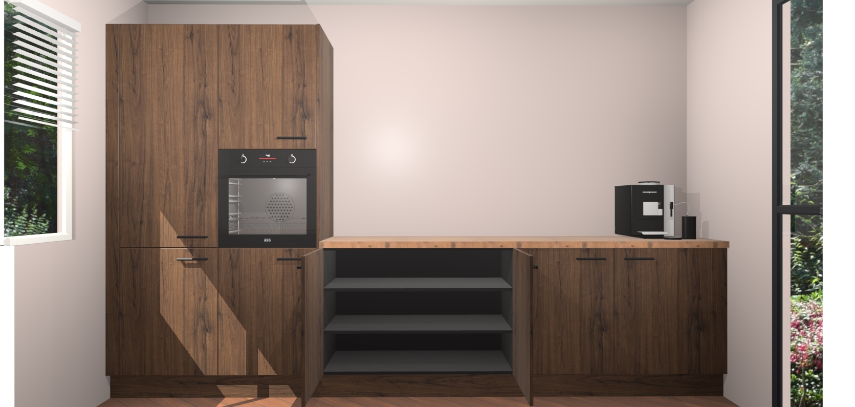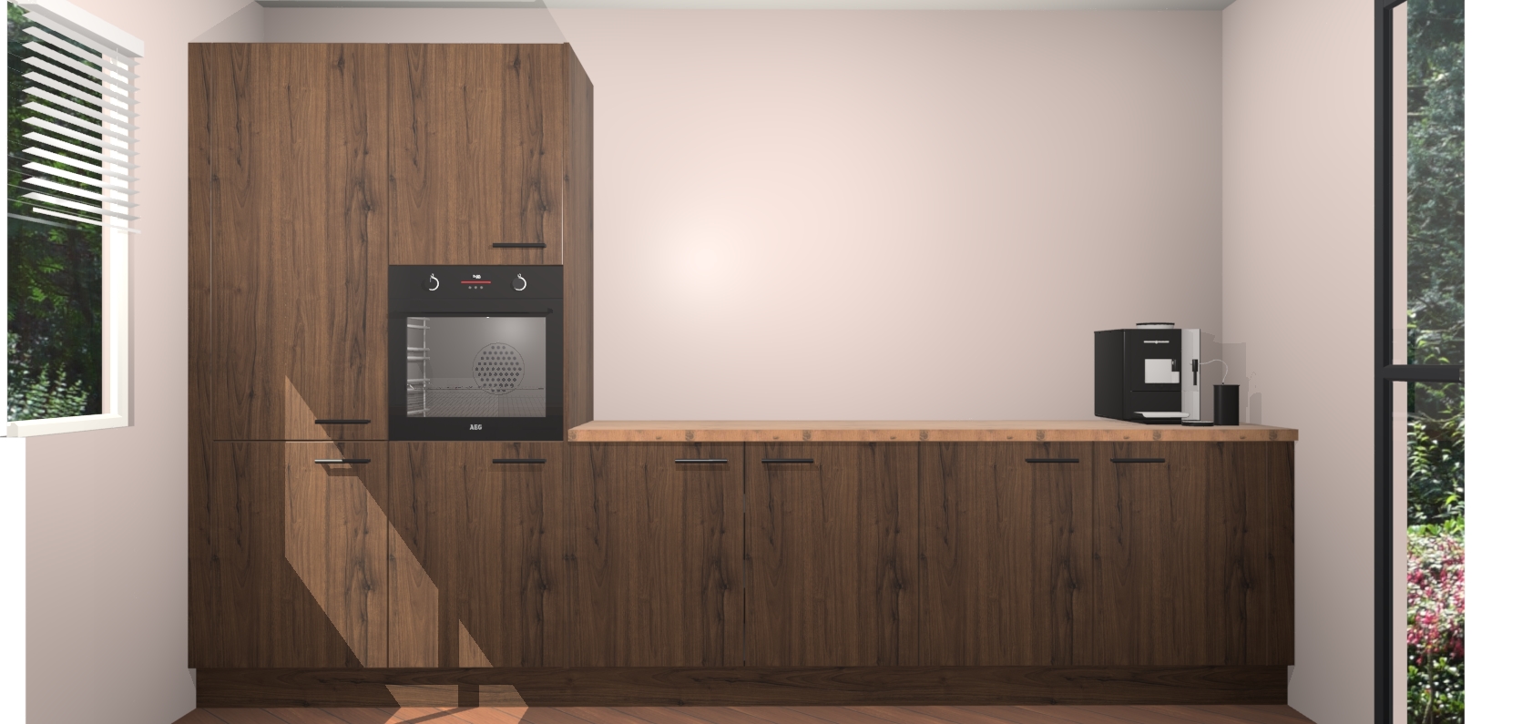 Welkom bij de Noten keuken Lusaka. Deze prachtige keuken zal de komende jaren het middelpunt van de belangstelling in uw huis zijn. Uitgerust met vijf inbouwapparaten komt u nooit kookgereedschap tekort. Bovendien geeft de warme houtlook elke ruimte een uitnodigende en tijdloze uitstraling.