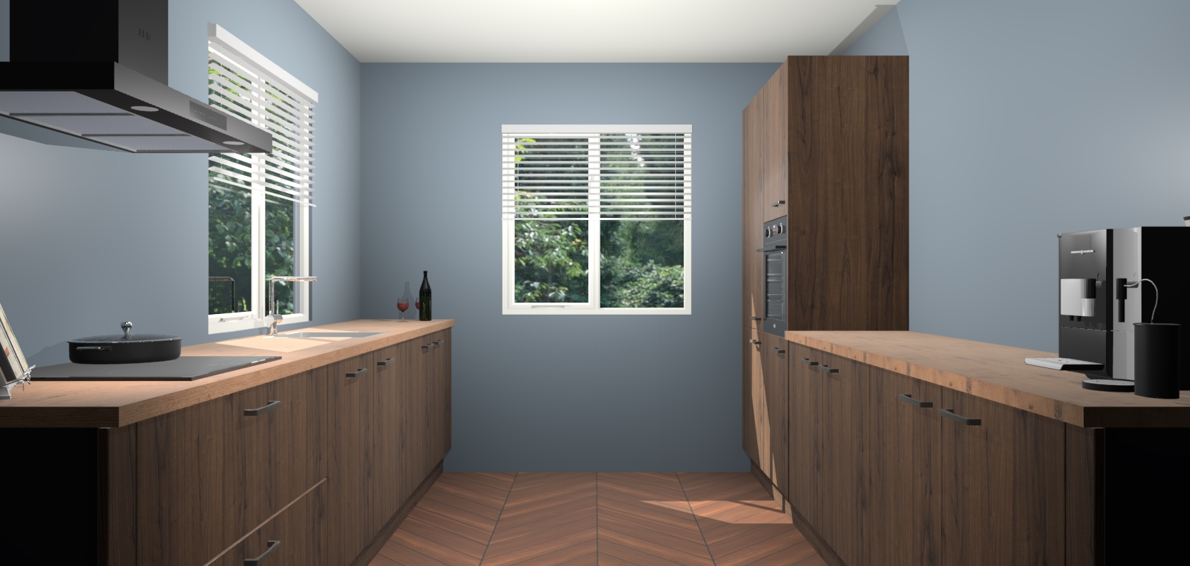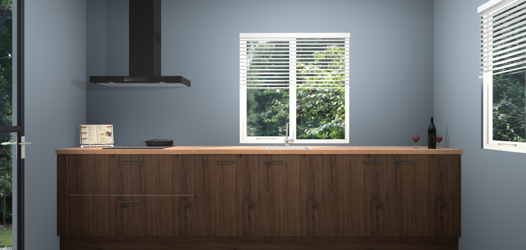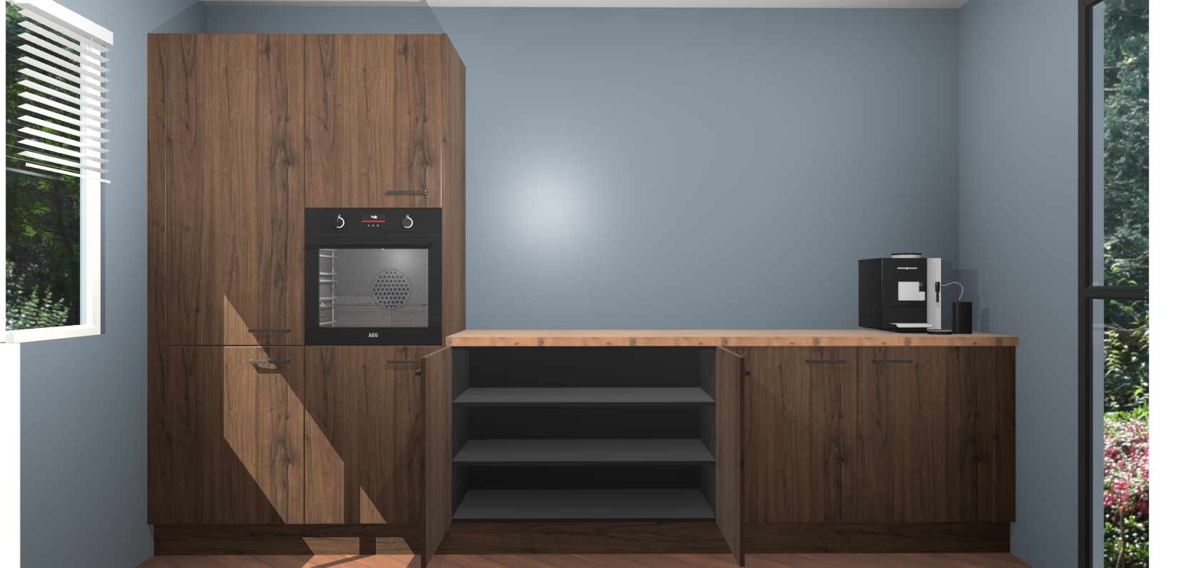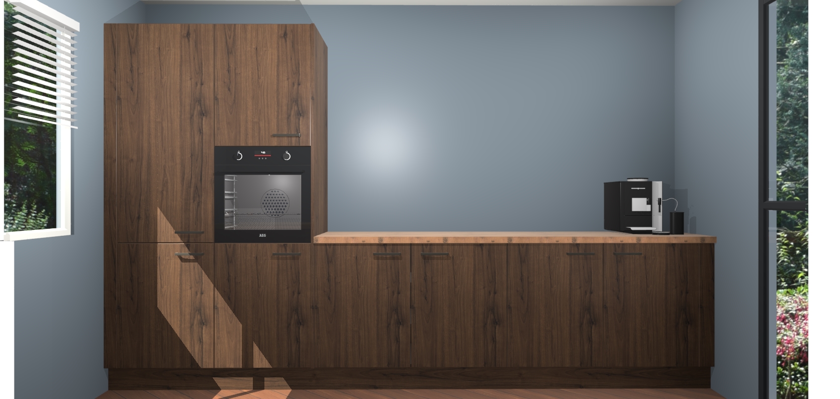 Welkom bij de Noten keuken Lusaka. Deze prachtige keuken zal de komende jaren het middelpunt van de belangstelling in uw huis zijn. Uitgerust met vijf inbouwapparaten komt u nooit kookgereedschap tekort. Bovendien geeft de warme houtlook elke ruimte een uitnodigende en tijdloze uitstraling.
