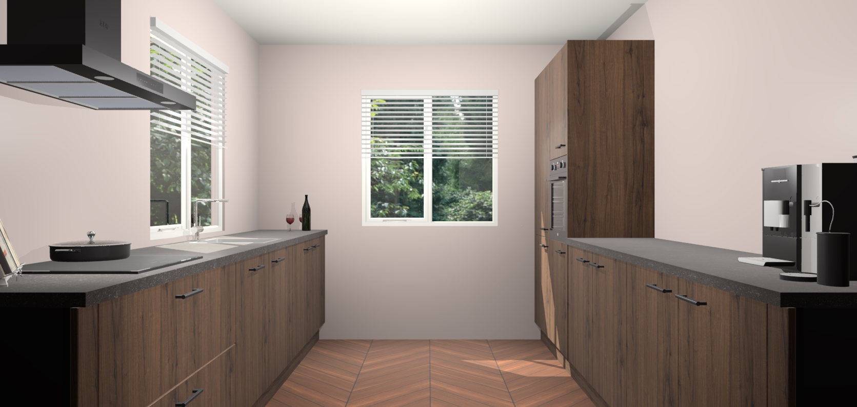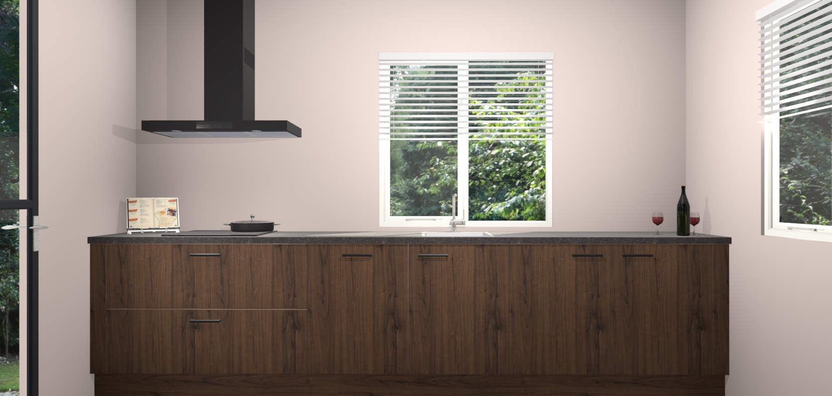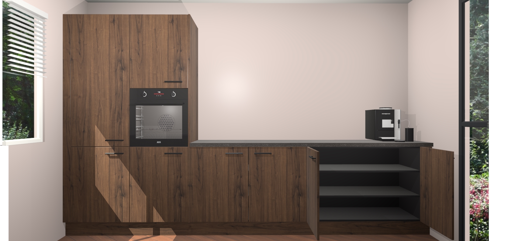 Welkom bij de Noten keuken Lusaka. Deze prachtige keuken zal de komende jaren het middelpunt van de belangstelling in uw huis zijn. Uitgerust met vijf inbouwapparaten komt u nooit kookgereedschap tekort. Bovendien geeft de warme houtlook elke ruimte een uitnodigende en tijdloze uitstraling.