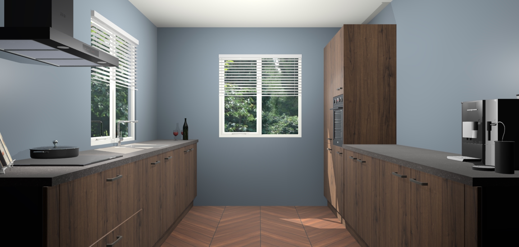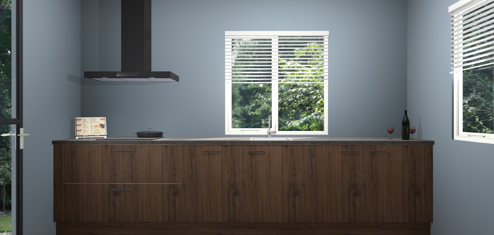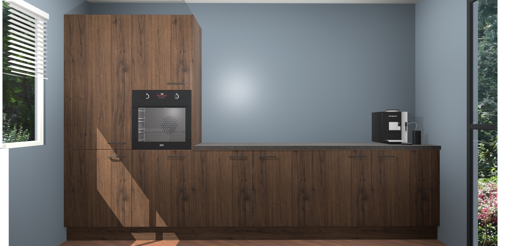 Welkom bij de Noten keuken Lusaka. Deze prachtige keuken zal de komende jaren het middelpunt van de belangstelling in uw huis zijn. Uitgerust met vijf inbouwapparaten komt u nooit kookgereedschap tekort. Bovendien geeft de warme houtlook elke ruimte een uitnodigende en tijdloze uitstraling.