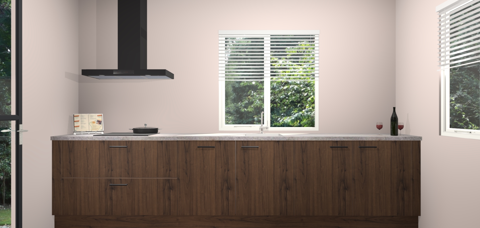 Welkom bij de Noten keuken Lusaka. Deze prachtige keuken zal de komende jaren het middelpunt van de belangstelling in uw huis zijn. Uitgerust met vijf inbouwapparaten komt u nooit kookgereedschap tekort. Bovendien geeft de warme houtlook elke ruimte een uitnodigende en tijdloze uitstraling.