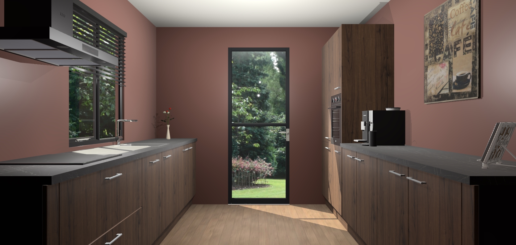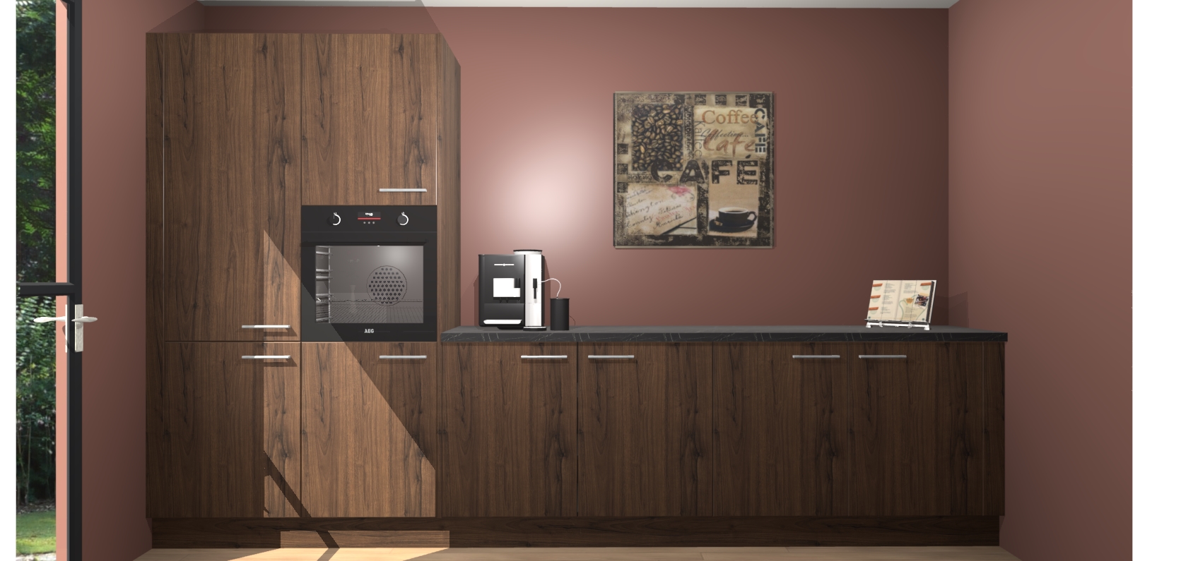 Welkom bij de Noten keuken Lusaka. Deze prachtige keuken zal de komende jaren het middelpunt van de belangstelling in uw huis zijn. Uitgerust met vijf inbouwapparaten komt u nooit kookgereedschap tekort. Bovendien geeft de warme houtlook elke ruimte een uitnodigende en tijdloze uitstraling.