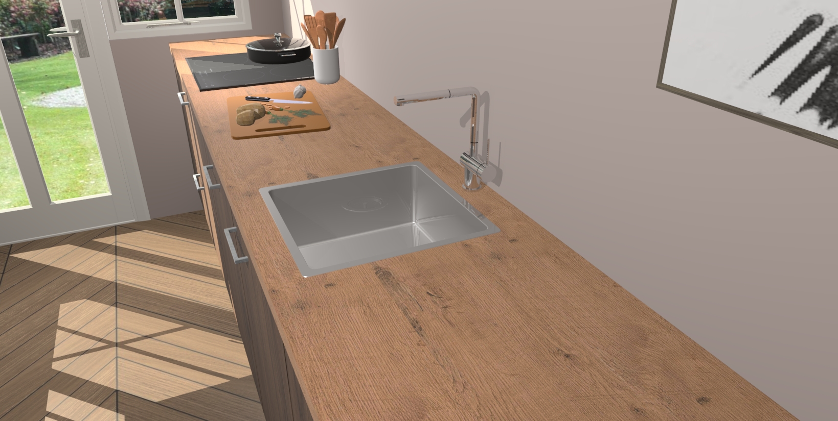 - Uitsparing van kookplaat, spoelbak en kraan dient u zelf te verzorgen.