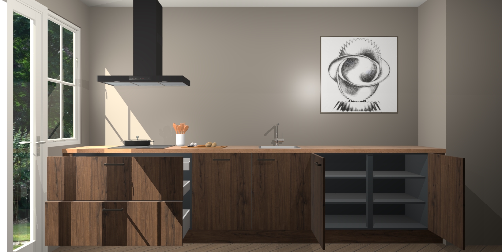 Dankzij de afwerking past de Noten keuken Olympia naadloos in elk huis of appartement. De soft-close deuren geven je extra gemoedsrust, want ze sluiten vanzelf en slaan nooit dicht! En alsof dat nog niet genoeg is, worden deze kasten volledig gemonteerd geleverd, dus maak je geen zorgen over eventuele installatieproblemen.