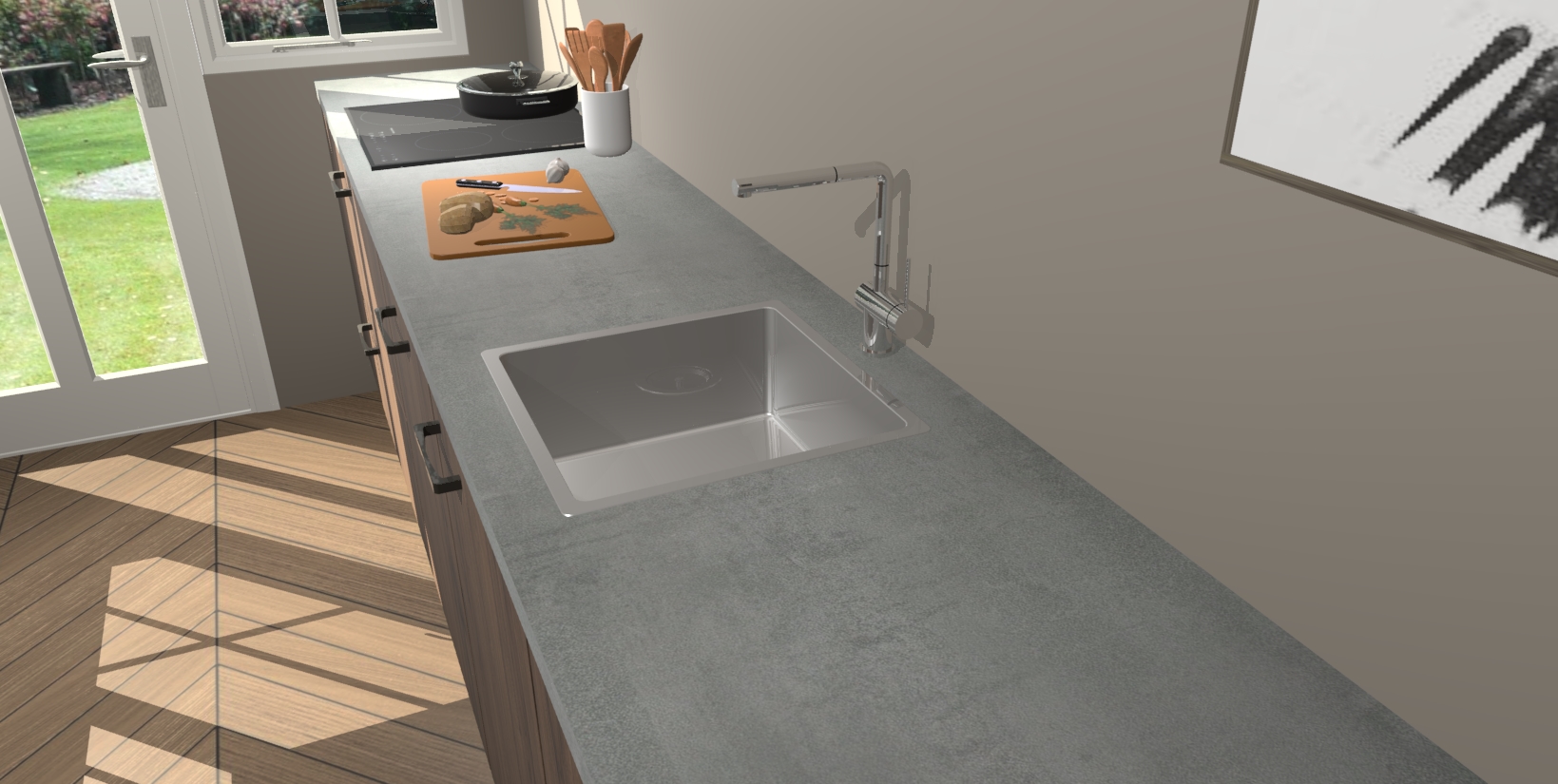 • Bij een hoekwerkblad zijn de hoeken in gevreesd en op maat gemaakt