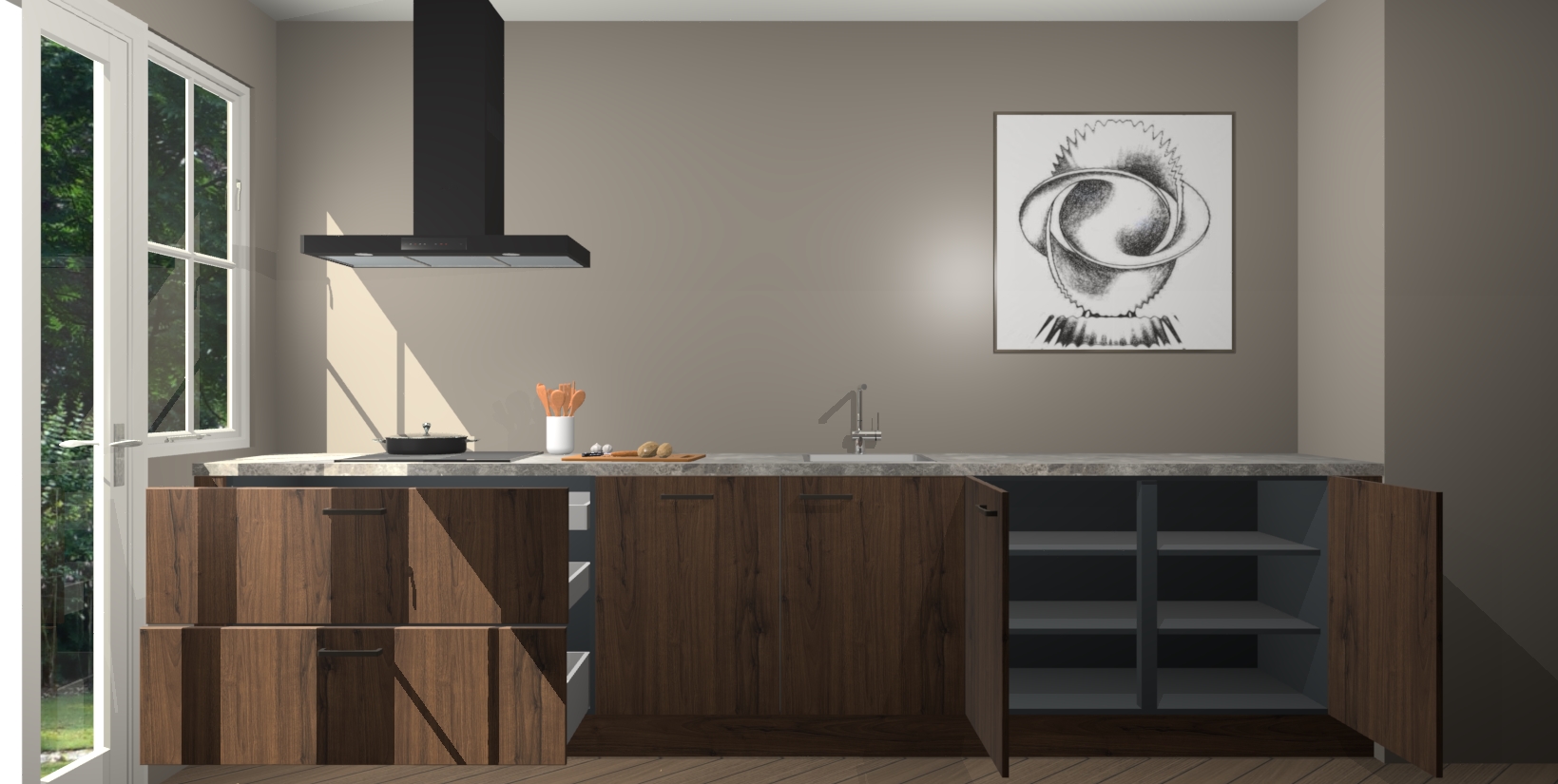 Dankzij de afwerking past de Noten keuken Olympia naadloos in elk huis of appartement. De soft-close deuren geven je extra gemoedsrust, want ze sluiten vanzelf en slaan nooit dicht! En alsof dat nog niet genoeg is, worden deze kasten volledig gemonteerd geleverd, dus maak je geen zorgen over eventuele installatieproblemen.