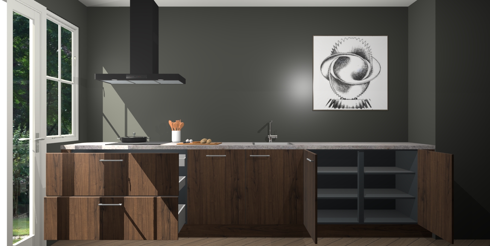 Dankzij de afwerking past de Noten keuken Olympia naadloos in elk huis of appartement. De soft-close deuren geven je extra gemoedsrust, want ze sluiten vanzelf en slaan nooit dicht! En alsof dat nog niet genoeg is, worden deze kasten volledig gemonteerd geleverd, dus maak je geen zorgen over eventuele installatieproblemen.