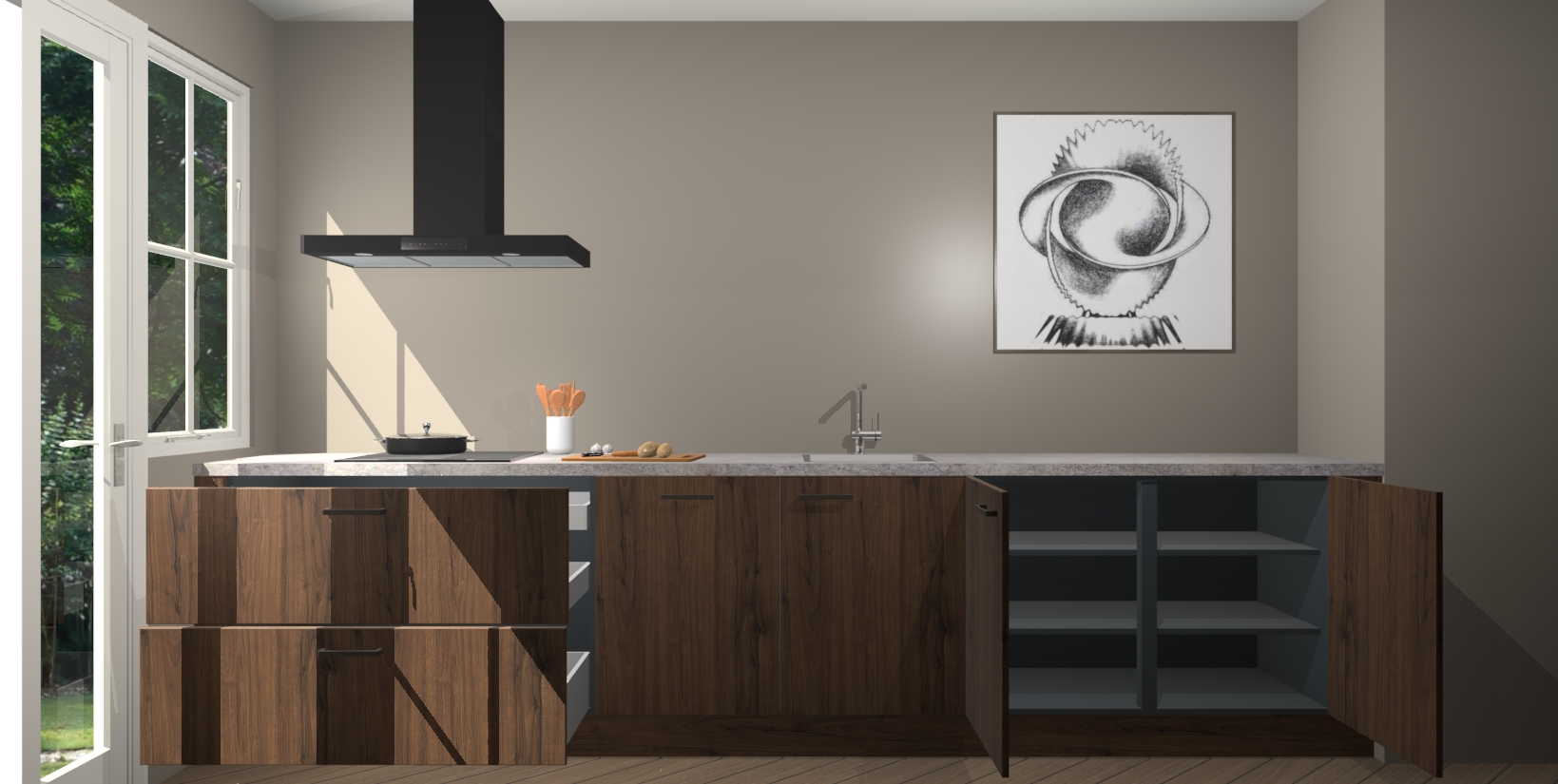 Dankzij de afwerking past de Noten keuken Olympia naadloos in elk huis of appartement. De soft-close deuren geven je extra gemoedsrust, want ze sluiten vanzelf en slaan nooit dicht! En alsof dat nog niet genoeg is, worden deze kasten volledig gemonteerd geleverd, dus maak je geen zorgen over eventuele installatieproblemen.