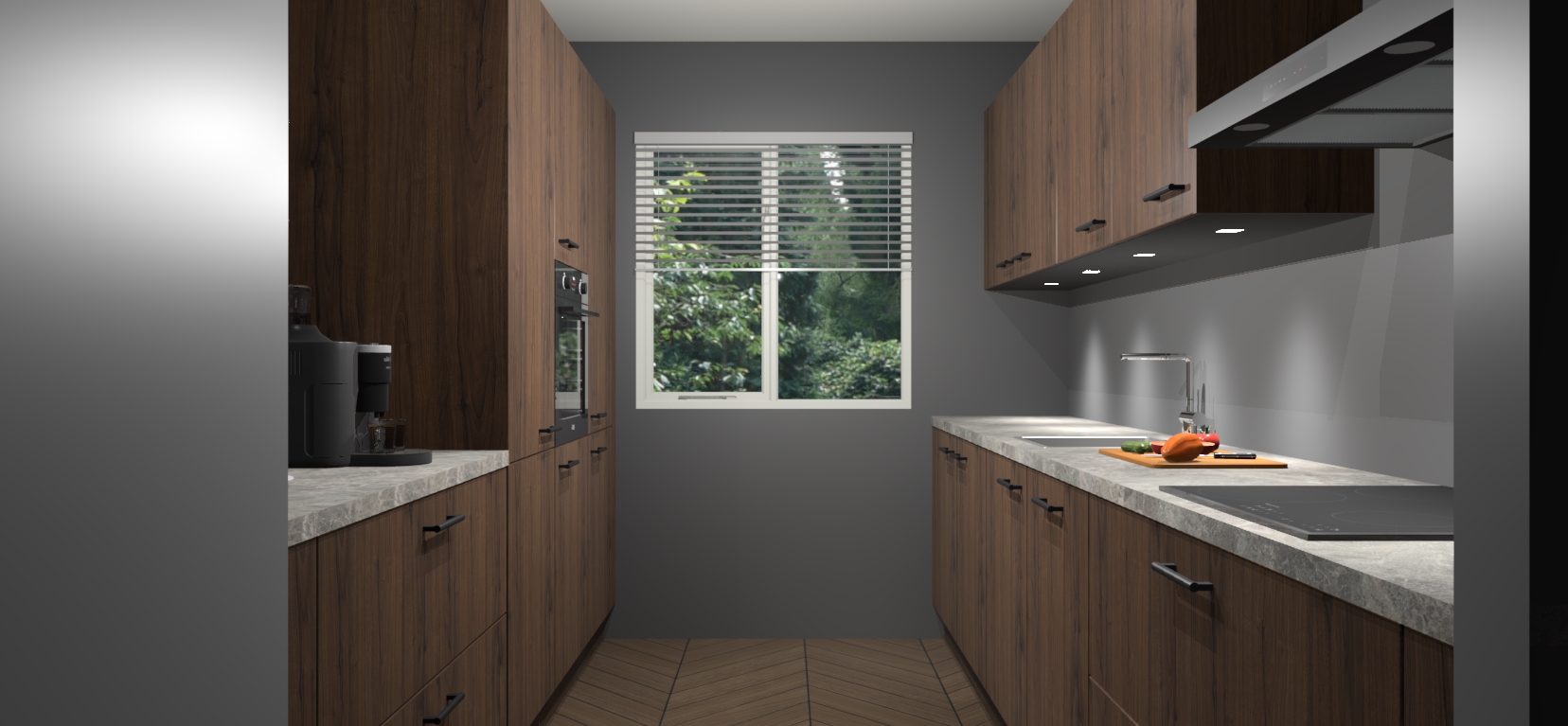 Een stijlvolle en praktische keuken als deze mag gezien worden. Dankzij de prachtige Noten matte afwerking wordt de keuken gemakkelijk het middelpunt van uw huis - hij ziet er geweldig uit onder allerlei lichtomstandigheden, van dag tot nacht!